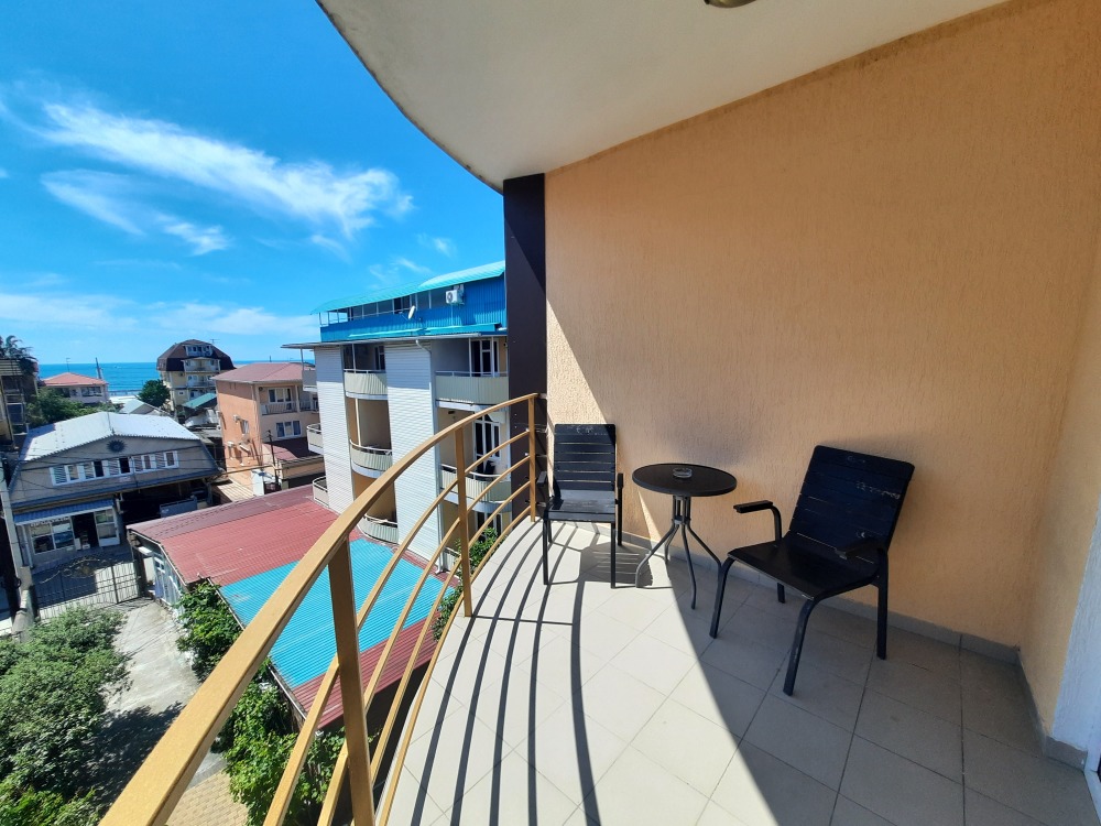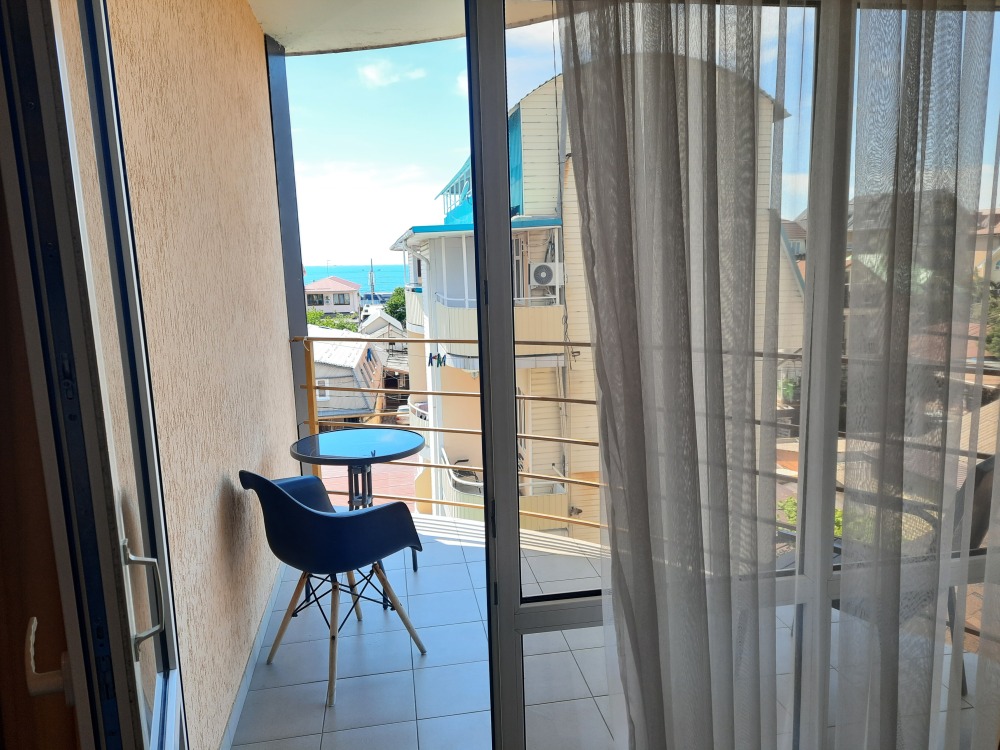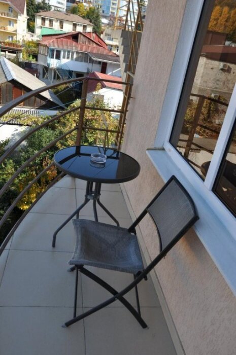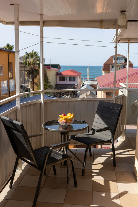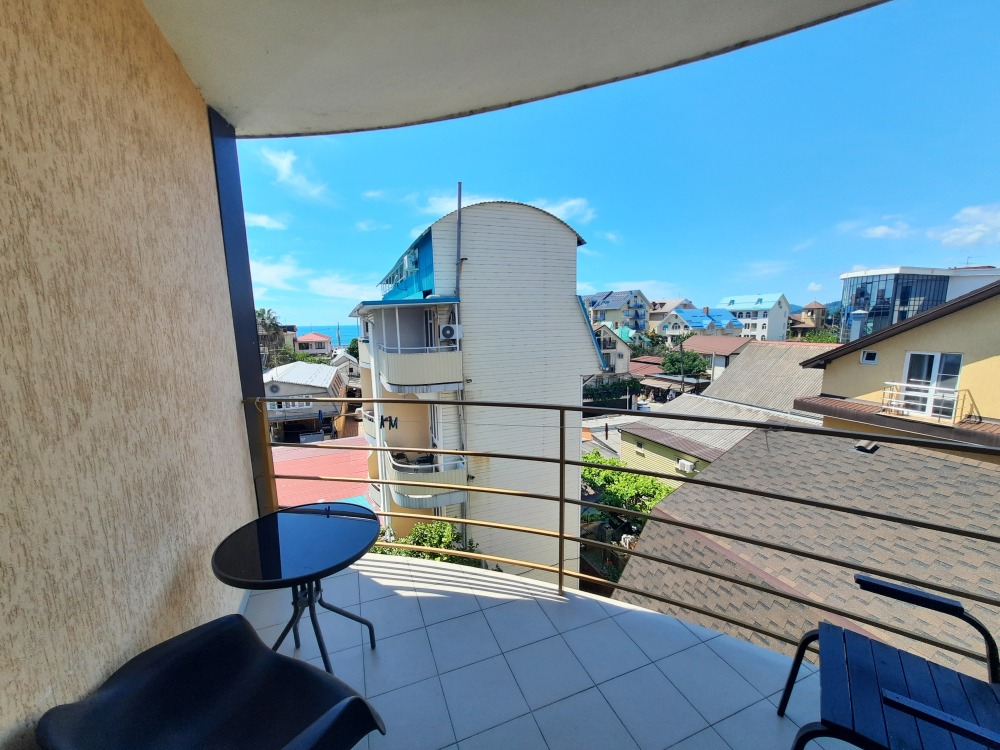 На балконе сушилка для белья и летняя мебель для отдыха. С балкона есть боковой вид на море (4 этаж).