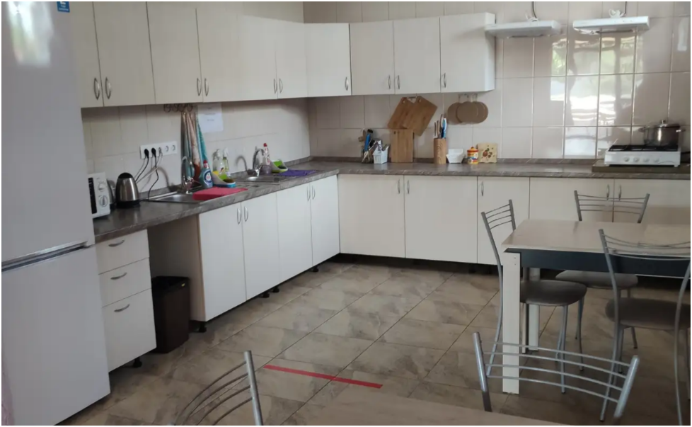 Бесплатная автостоянка для Вашего автомобиля на территории гостевого дома. Для приготовления пищи обустроена кухня со всем необходимым: набором посуды, печкой, микроволновой печью, большим, вместительным холодильником и местом, где может вместе собраться покушать вся Ваша семья. Любителям пожарить и отведать шашлыка, предоставляется мангал и все необходимые для этого приспособления. Для детей организована детская площадка и зона досуга.