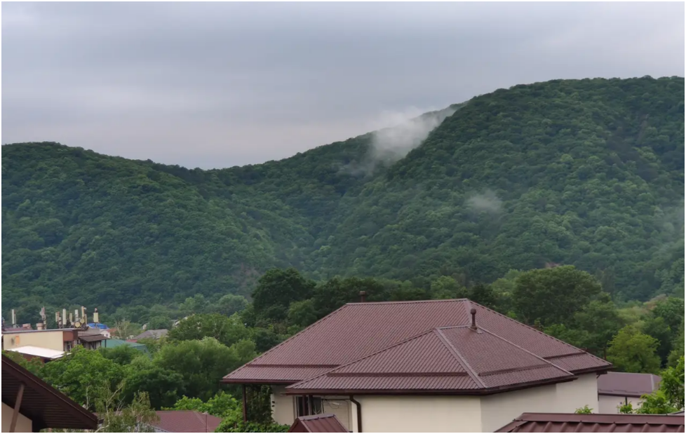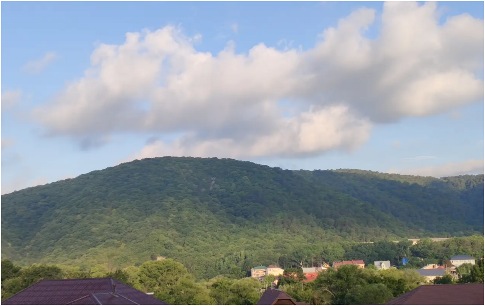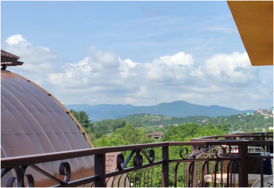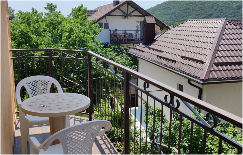 Справа находятся горы, их видно из окон и балконов гостевого дома. Вы получите возможность наслаждаться чистым горным воздухом за чашечкой Вашего утреннего кофе или чая. С верхних этажей нашего гостевого дома открывается панорама моря - морская гладь как на ладони.