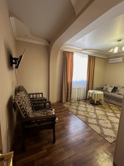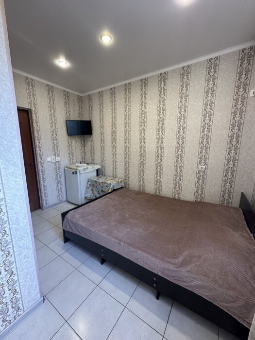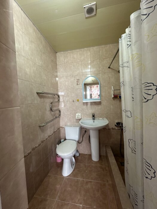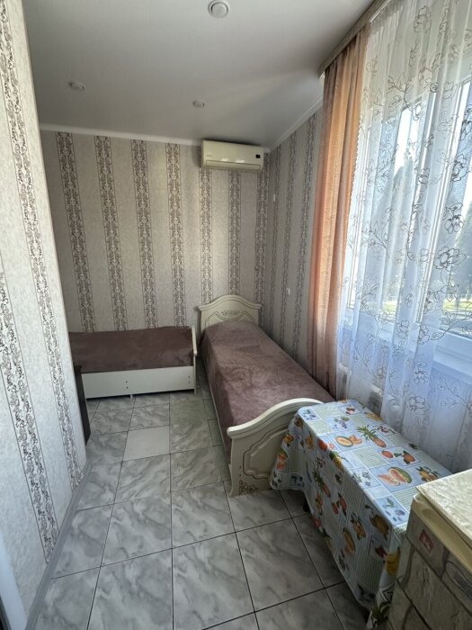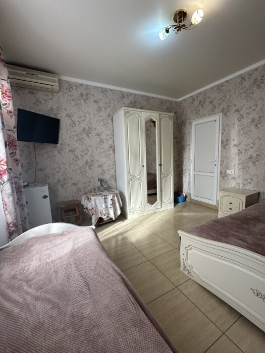 Здесь созданы все условия для комфортного проживания - есть кондиционер, холодильник, телевизор, фен, утюг, посуда, чайник, микроволновая печь, кухонная плита, отопление, терраса. Уборка - в определённые дни.