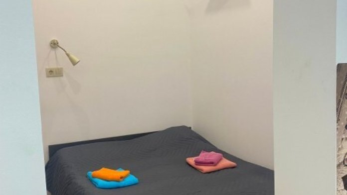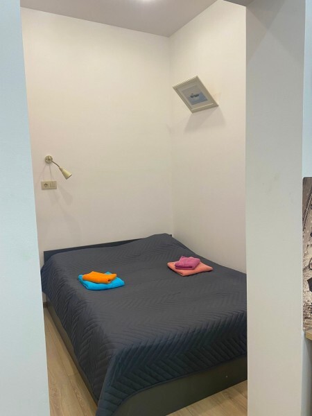 Двуспальная кровать 140-160см, шкаф, стол, стул, телевизор, чайник, микроволновка, холодильник, своя душевая и туалет.