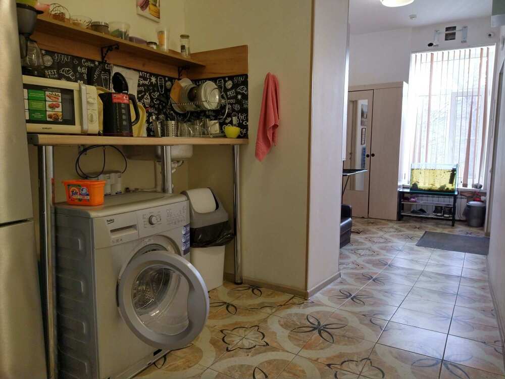 На этаже: гладильные принадлежности, фен, стиральная машина, сушилка, кухня с микроволновкой и большим холодильником. Трехступенчатая очистка воды в фильтре. Можно заказать питание, ресепшен круглосуточно.