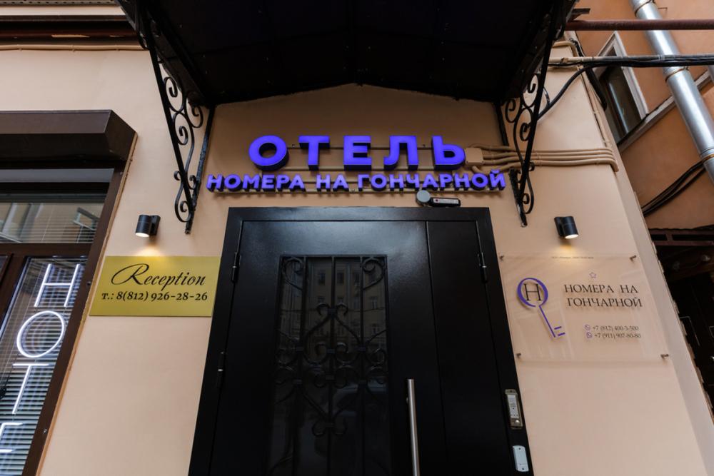 Отель «Номера на Гончарной» – это неповторимое сочетание качества сервиса, расположения и цены. Отель предлагает гостям 49 номеров различных категорий и расположен в самом сердце Санкт-Петербурга – у Московского вокзала. Всего 50 метрах от нашего отеля проходит главная артерия города – Невский проспект, на котором сконцентрированы все самые посещаемые достопримечательности, рестораны и развлекательные заведения города. Казанский собор, Спас на Крови, Дворцовая площадь и Государственный Эрмитаж – это лишь несколько из множества точек туристских маршрутов, проходящих сквозь Невский проспект. Расположение отеля в непосредственной близости от станции метро «Площадь Восстания» и главного железнодорожного вокзала Северной Столицы, будет значительным для деловых гостей города.