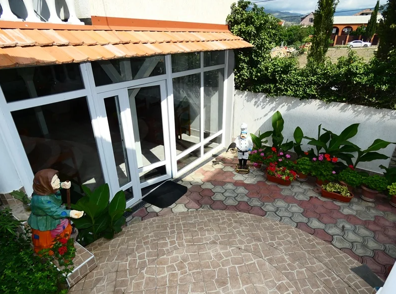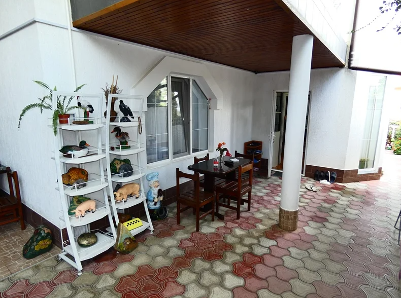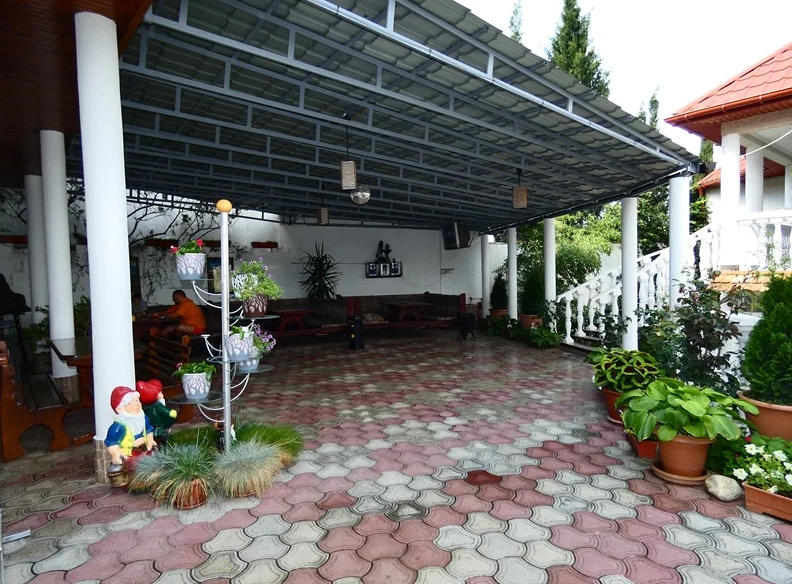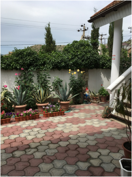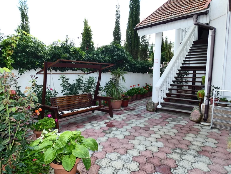 Двор утопает в зелени, есть зона отдыха с беседками, топчаны, отдельное место для готовки блюд на открытом огне.