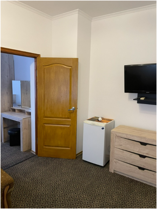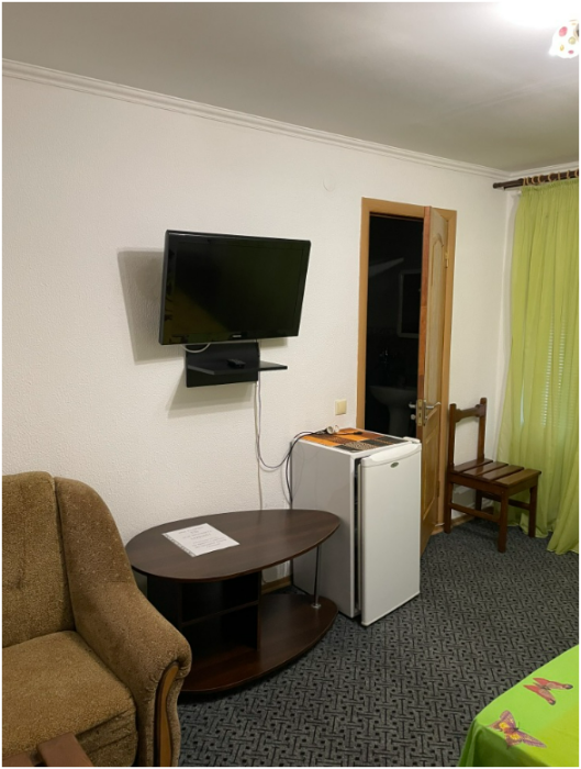 К услугам отдыхающих уютные номера, укомплектованные мебелью и техникой, в некоторых номерах есть обеденная зона, а также беседка с топчанами. В коридорах установлены гладильные доски и утюг.