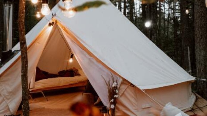 В каждом шатре розетки и освещение. Отапливается персональным обогревателем.