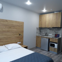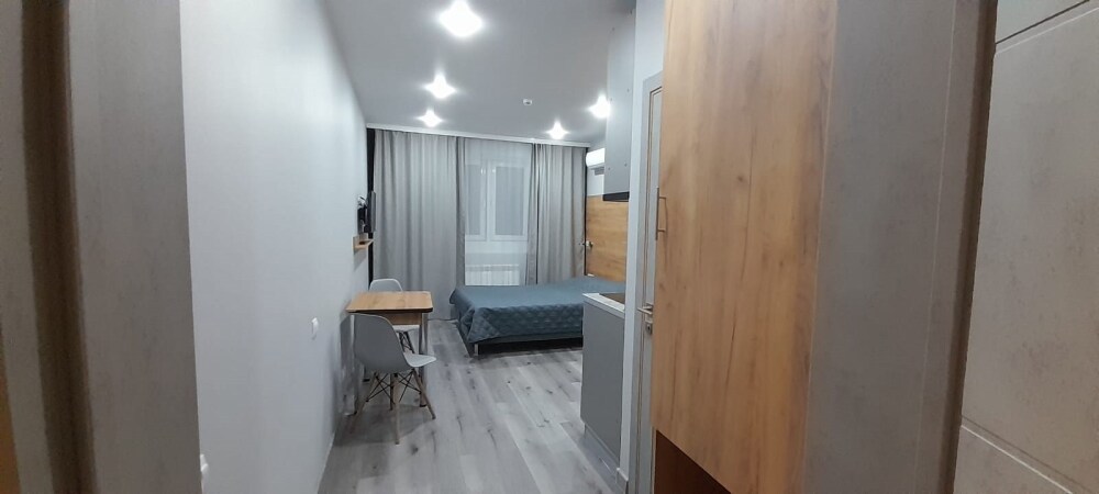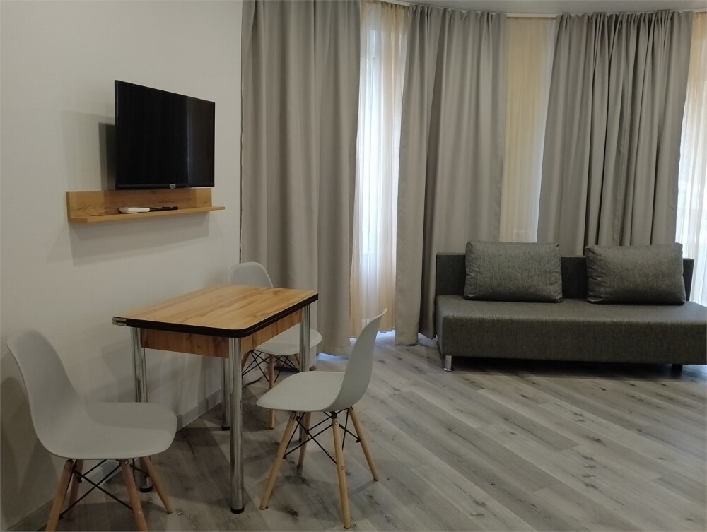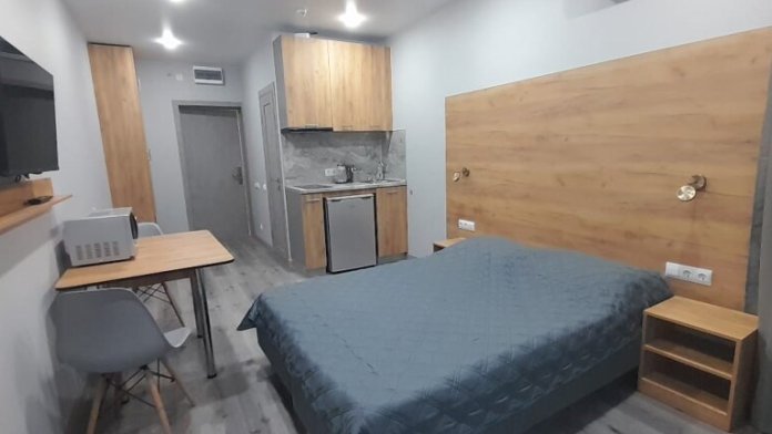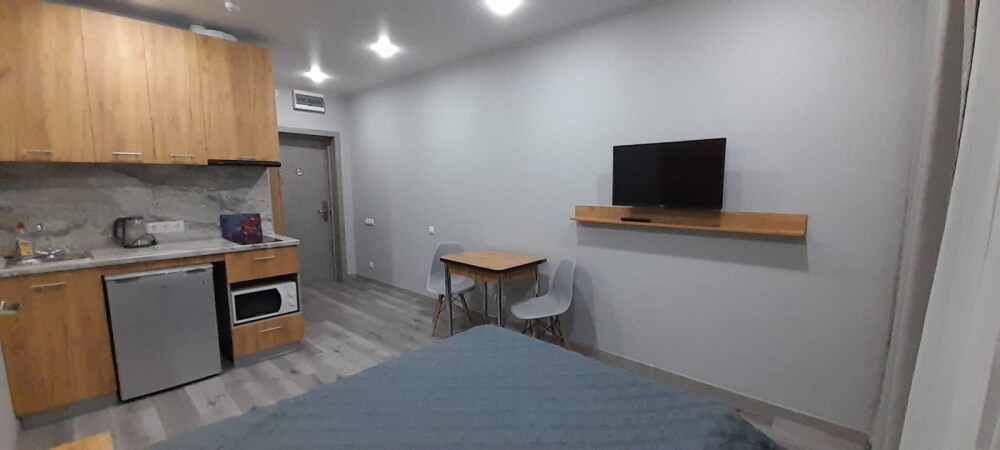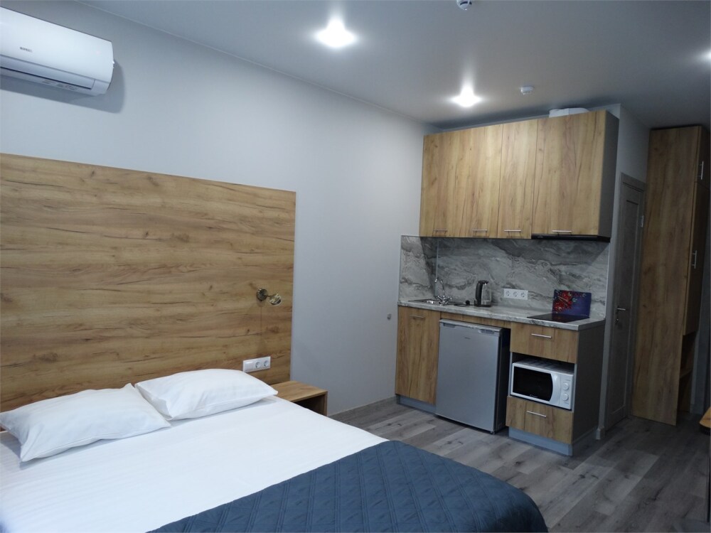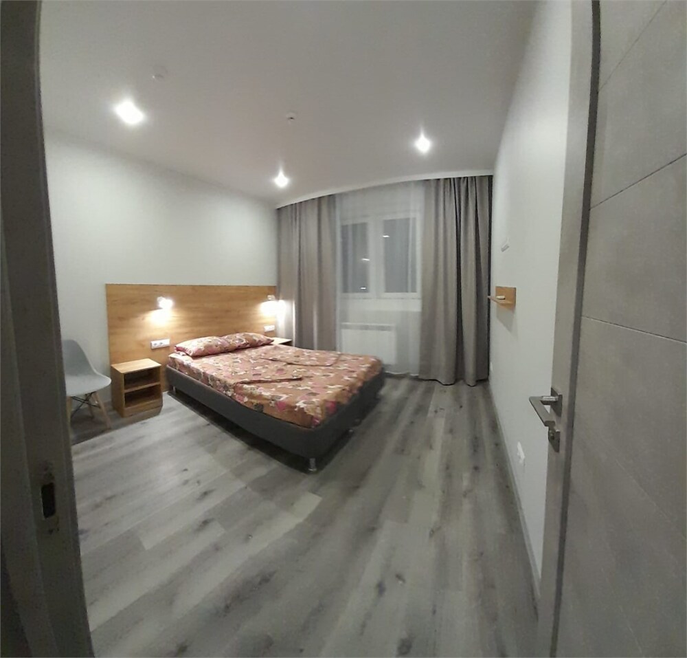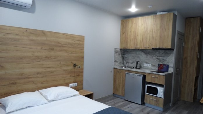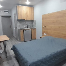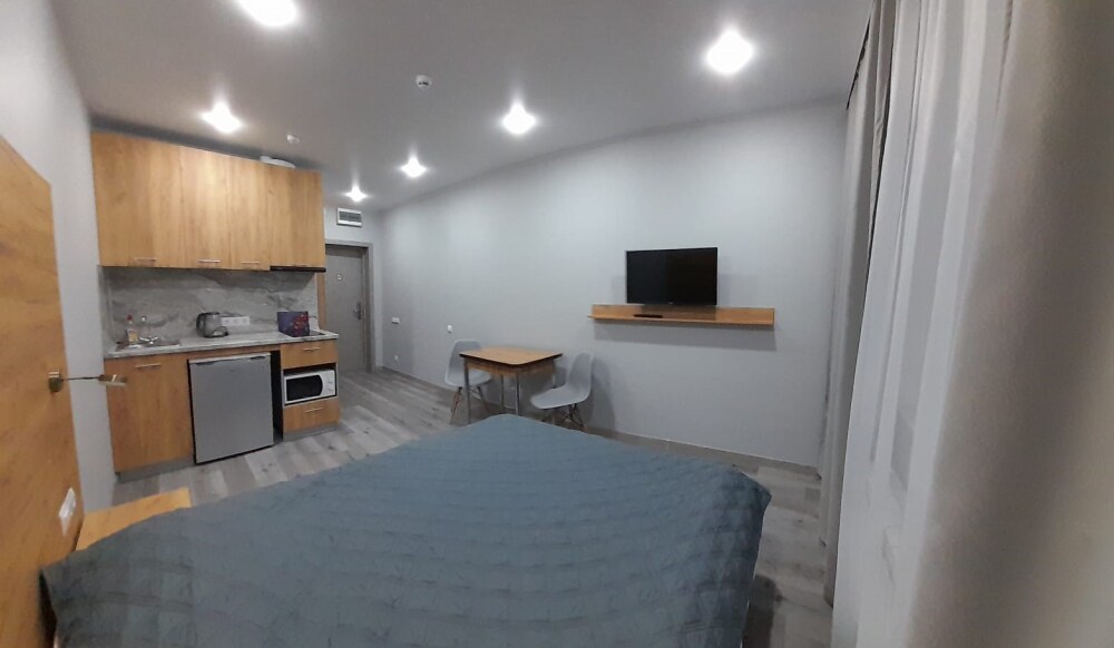 Уютные, в современном стиле комфортабельные апартаменты. В апартаментах предусмотрены удобные матрасы, гипоаллергенные подушки, сатиновое постельное белье премиум класса для комфортного отдыха. В апартаментах кондиционер, холодильник, встроенная кухня, необходимая бытовая кухонная техника, набор посуды.