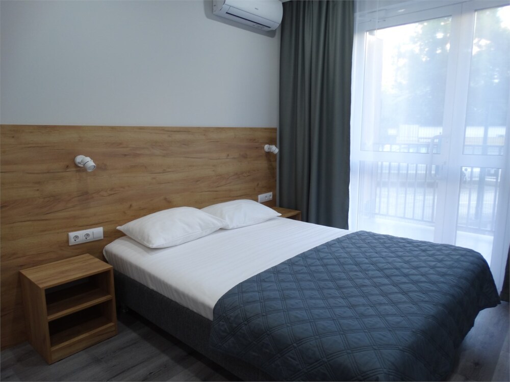 Уютные, в современном стиле комфортабельные апартаменты. В апартаментах предусмотрены удобные матрасы, гипоаллергенные подушки, сатиновое постельное белье премиум класса для комфортного отдыха. Делюкс апартаменты состоят из двух изолированных комнат. В апартаментах кондиционеры, холодильник, двуспальная кровать, односпальная кровать, диван, телевизор. В апартаментах кондиционер, холодильник, встроенная кухня, необходимая бытовая кухонная техника, набор посуды.