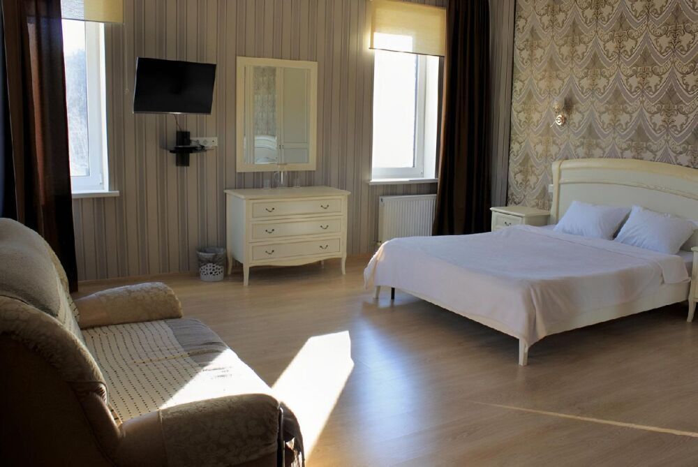 Во всех комнатах есть удобные спальные места (двуспальная кровать, двуспальный или полутораспальный диваны) и смарт-ТВ.