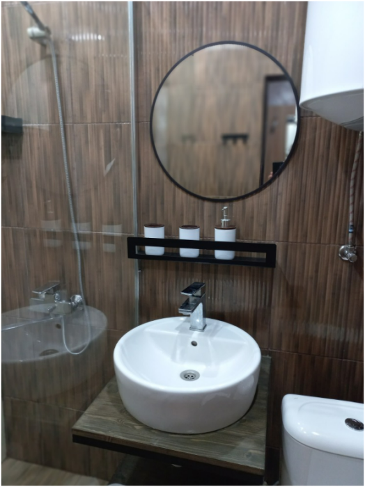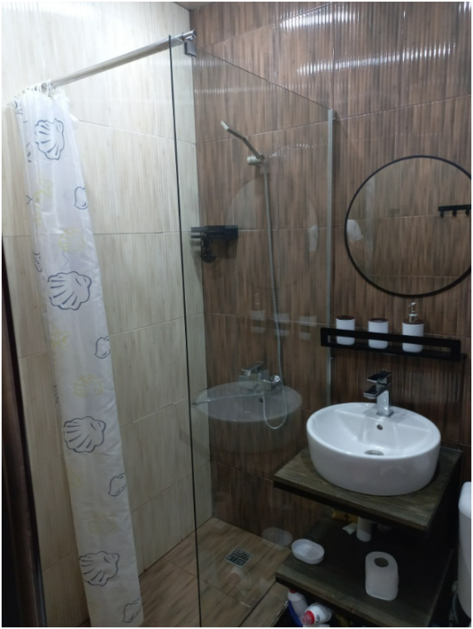 В квартире есть все для приготовления и употребления пищи. Ванные принадлежности с полотенцами, фен. Кондиционер в каждой комнате. Телевидение. Wi-Fi. Так же, установлена дополнительная емкость для бесперебойной подачи воды. (В Абхазии это важно, поверьте).
