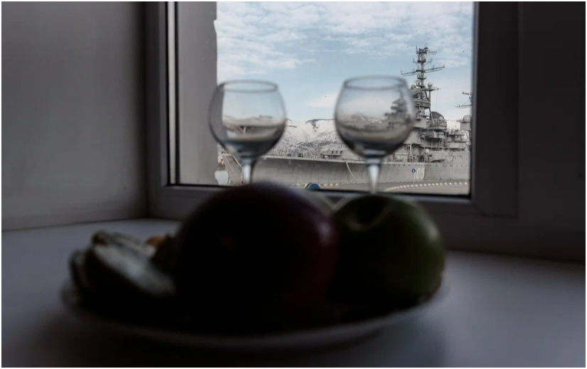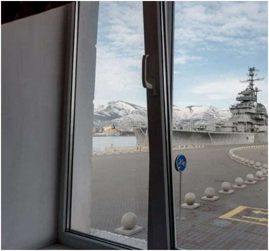 Квартира расположена в центре города (кв. №21), на 1-й линии с видом на Крейсер Михаил Кутузов, поре и Форумную площадь.