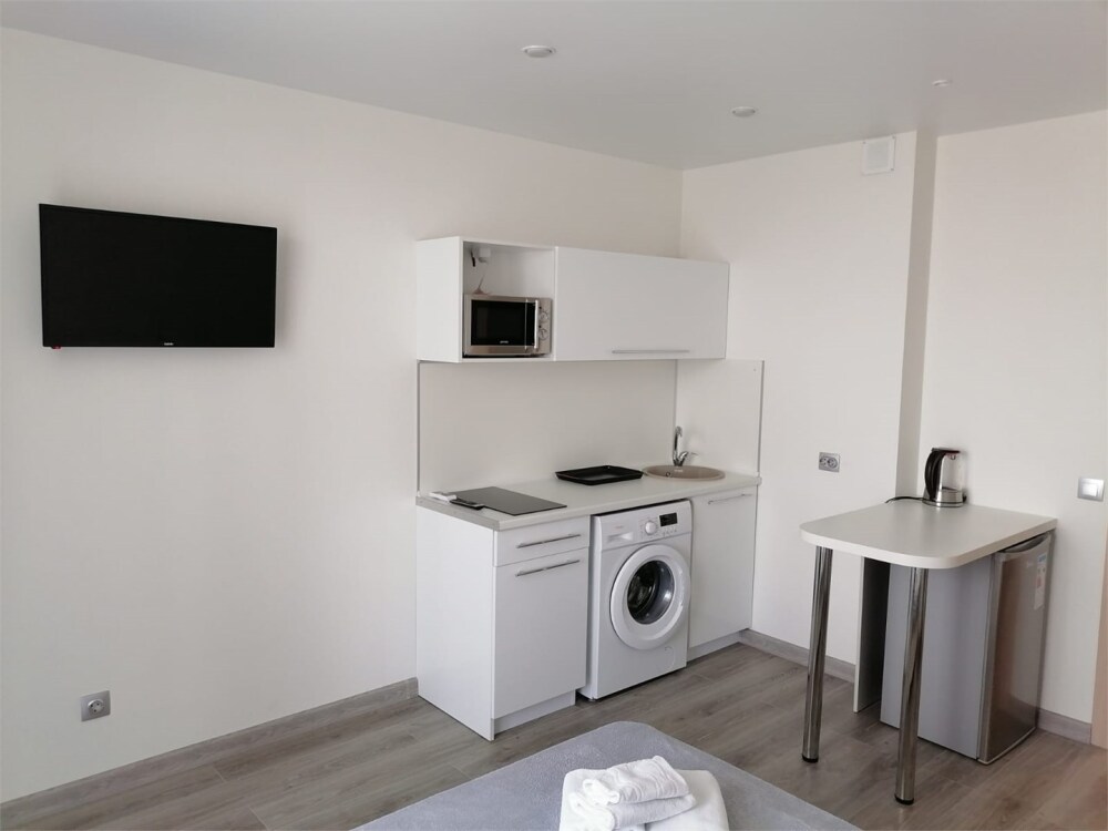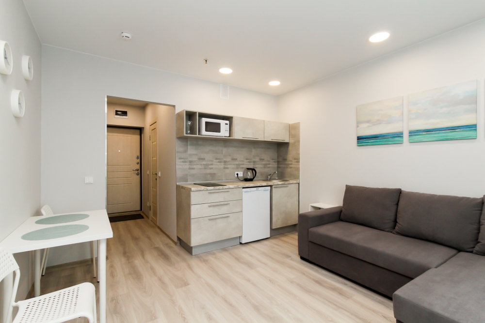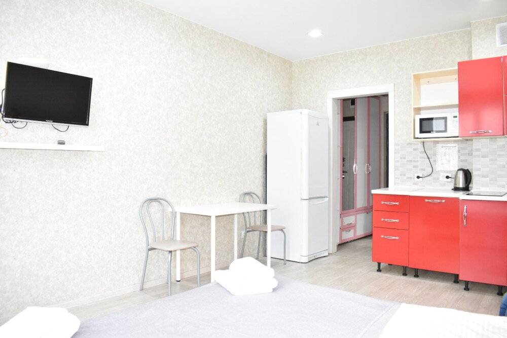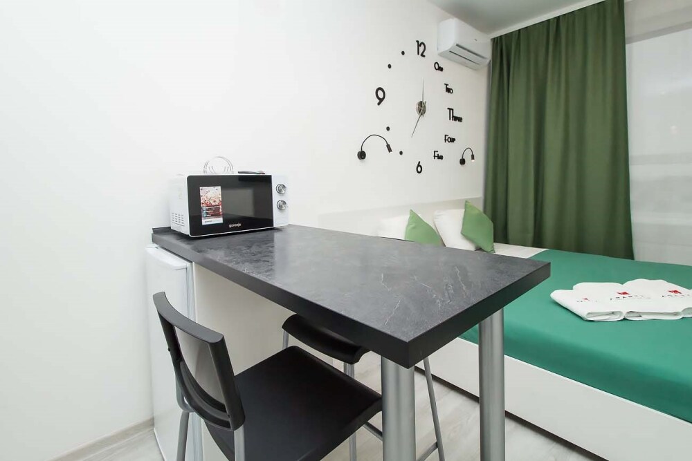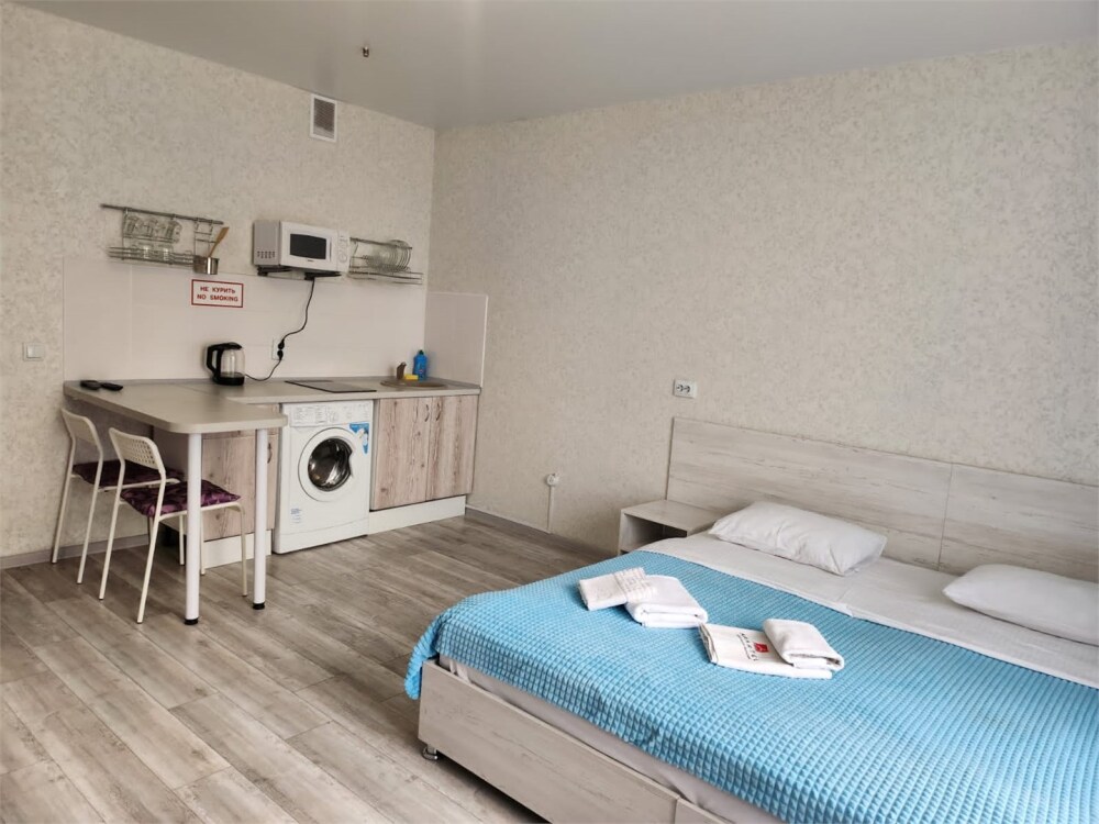 Апартаменты оборудованы техникой, инвентарем и мебелью необходимой для комфортного проживания. Перед каждым заселением они проходят проверку службы контроля качества.