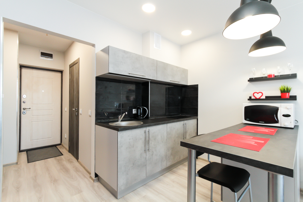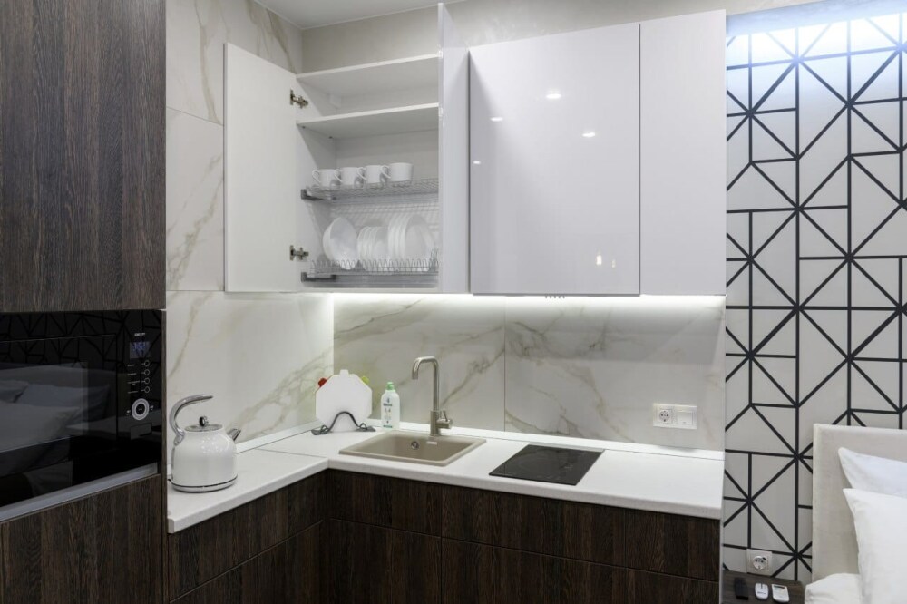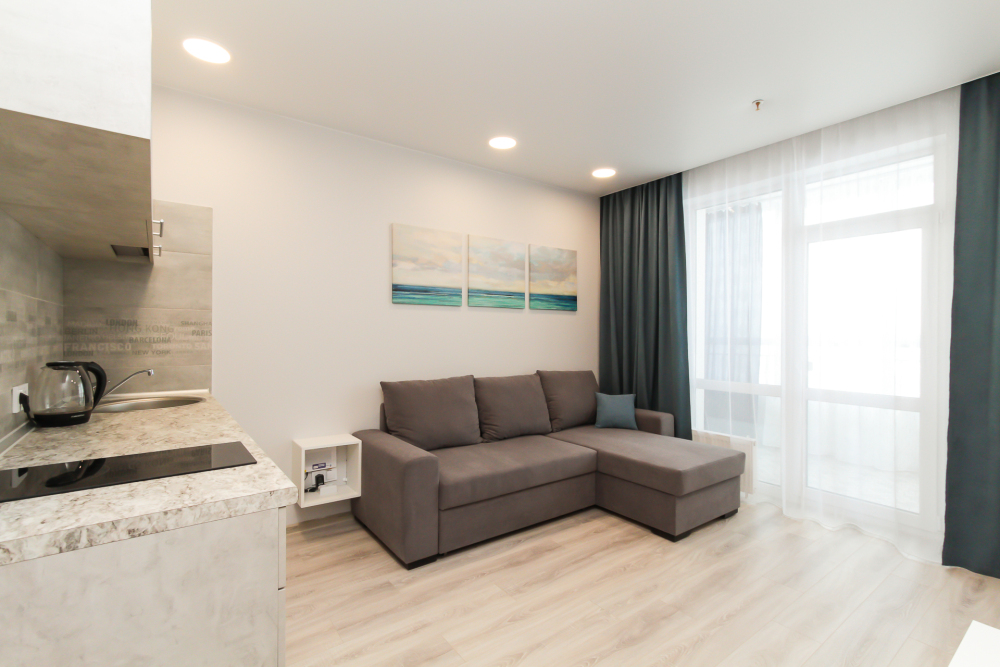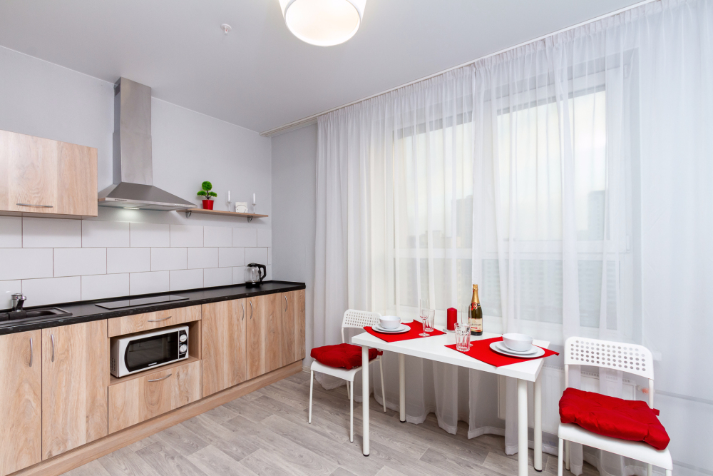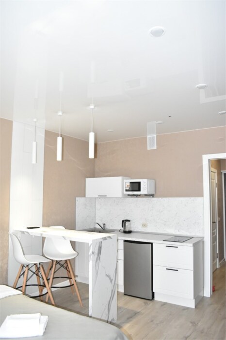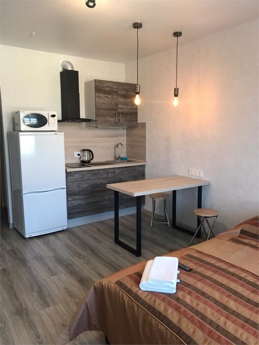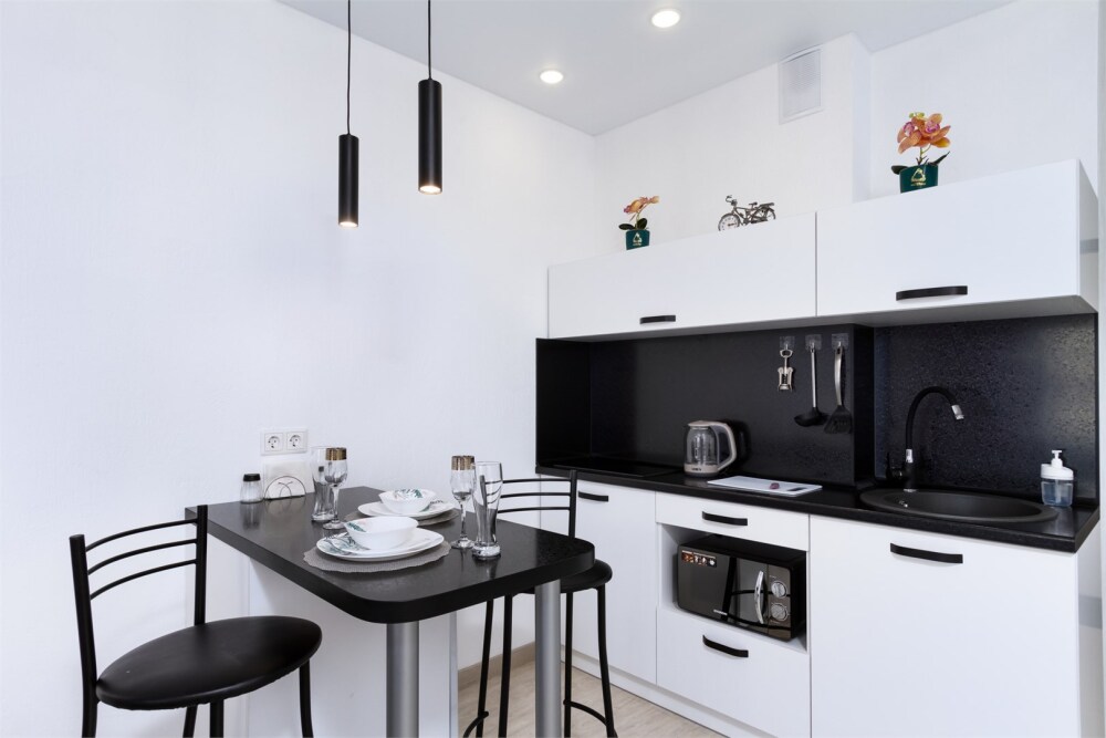 Апартаменты оборудованы техникой, инвентарем и мебелью необходимой для комфортного проживания. Перед каждым заселением они проходят проверку службы контроля качества.