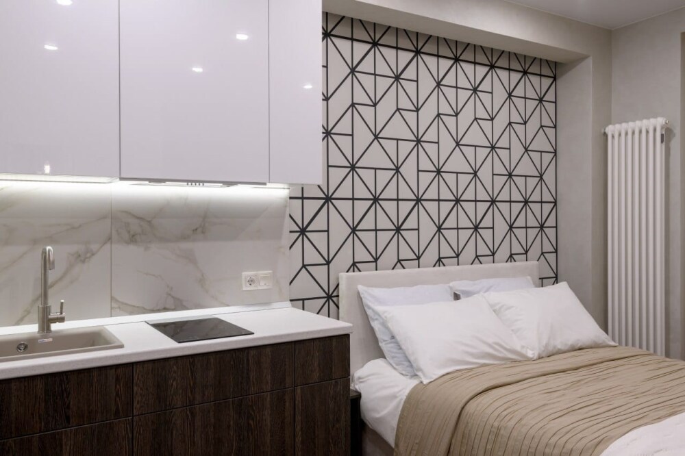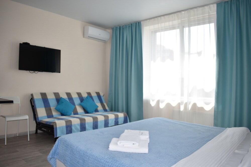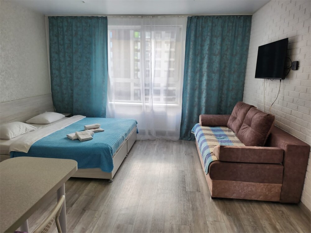 Студия FAMILY Dabl. Двуспальная кровать + диван. Санузел, мини-кухня.
