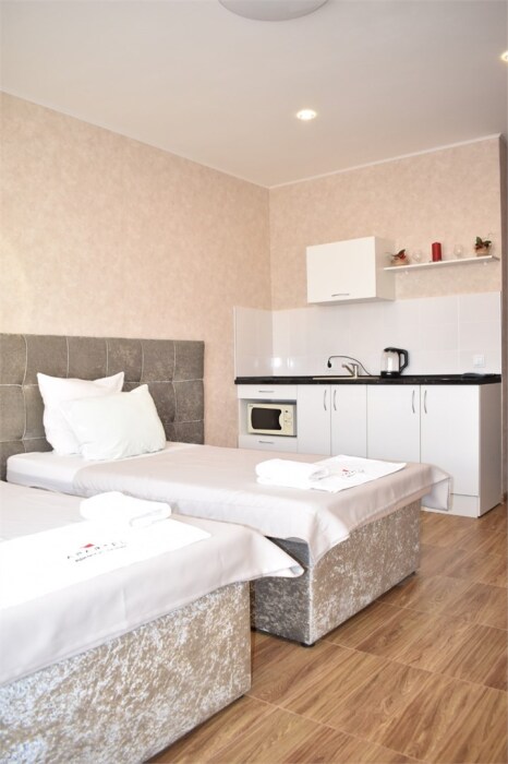 Стандарт номера с двумя односпальными/двуспальной кроватью (трасформер). Рассчитаны на двух гостей. В номере имеется с/у (душ/ванна), мини-кухня - оснащена бытовыми приборами.