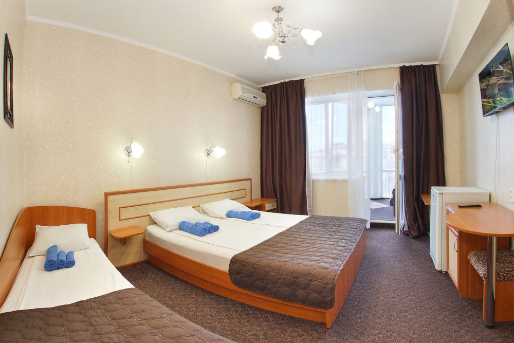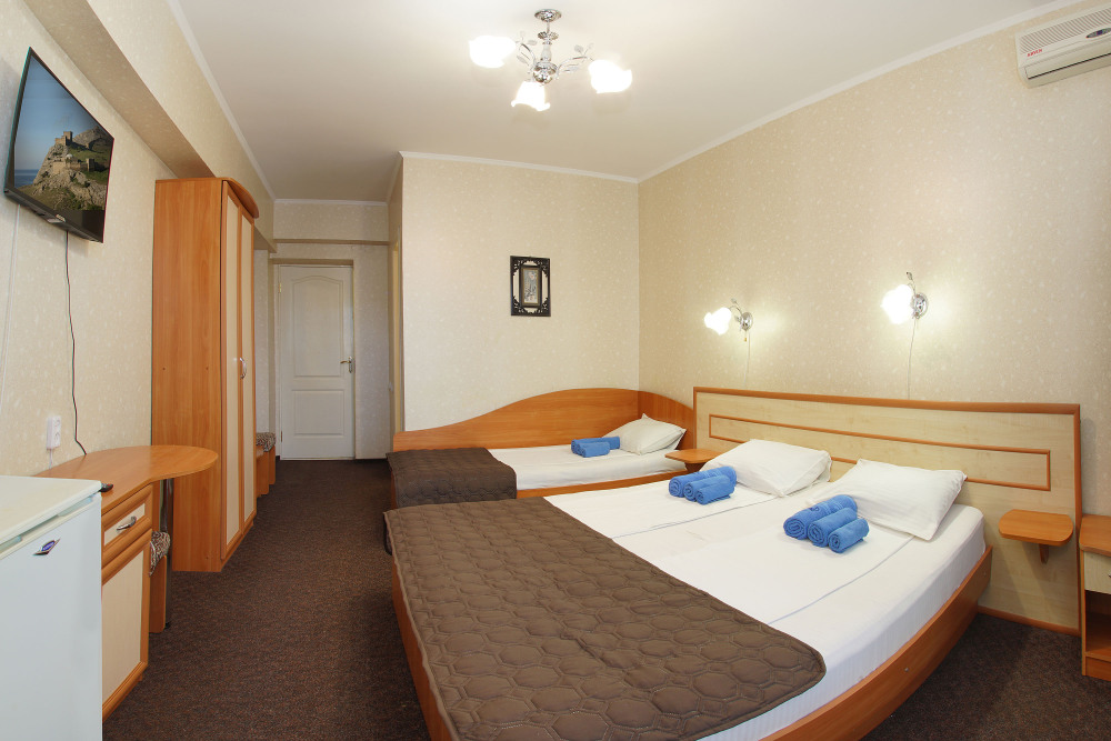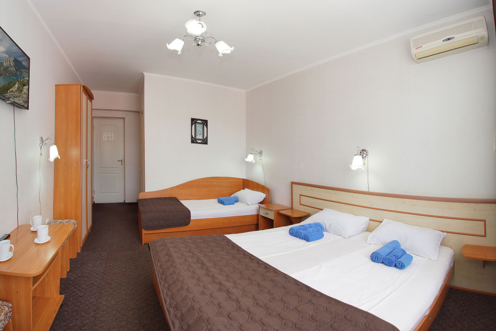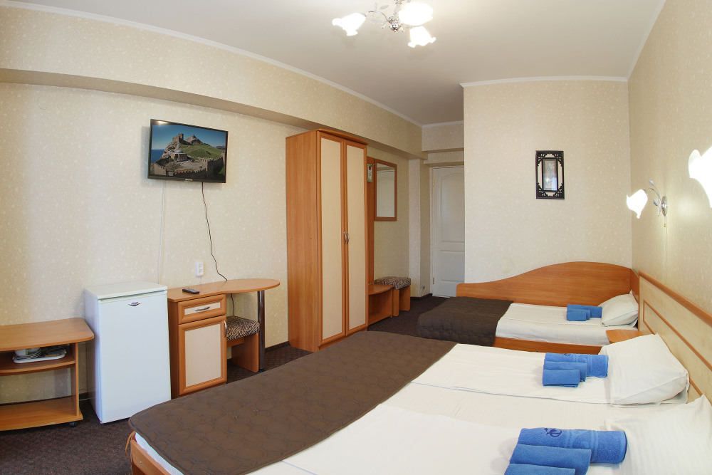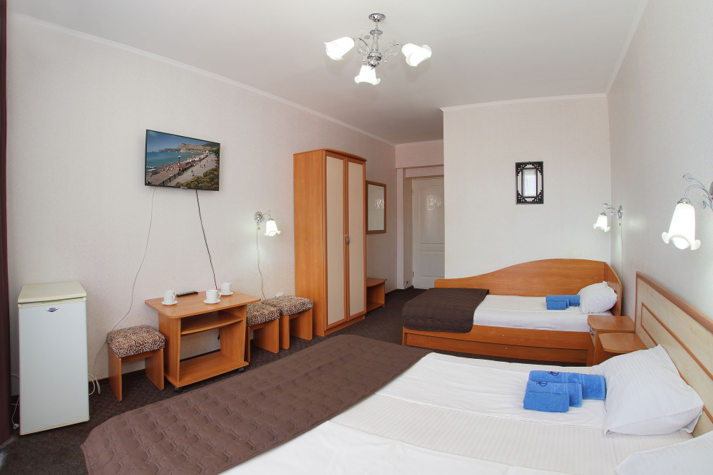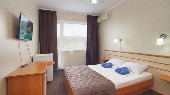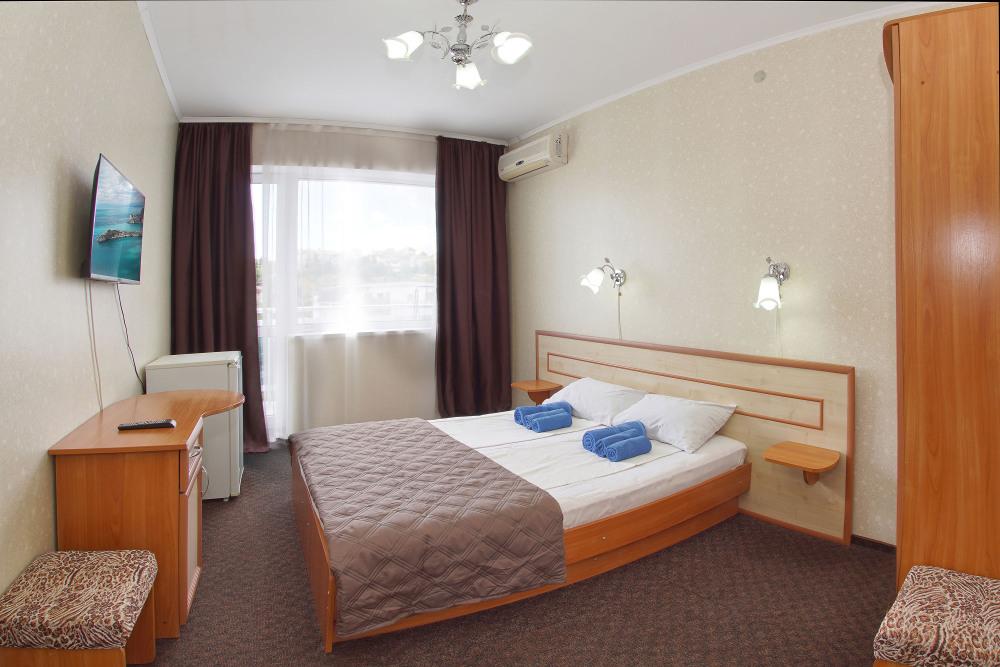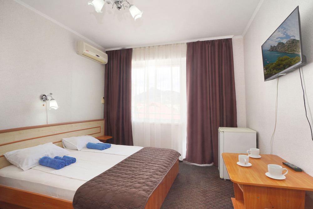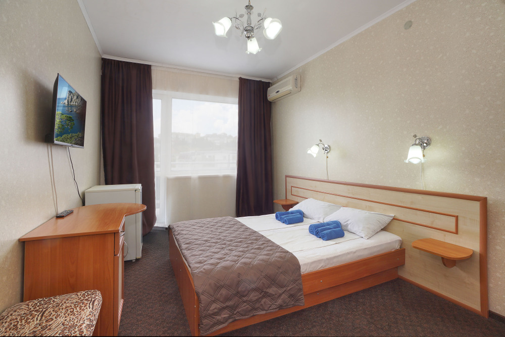 Это современный отель, стильный дизайн которого и европейский уровень обслуживания приятно Вас удивит. Номера просторны и светлые, оборудованы кондиционером и телевизором, мини-холодильником и ванной комнатой с душем. Из окон открывается чудесный вид на Судак, море и горы, а выйдя с утра на балкон, имеющийся у каждого номера, Вы почувствуете неповторимую свежесть морского воздуха.