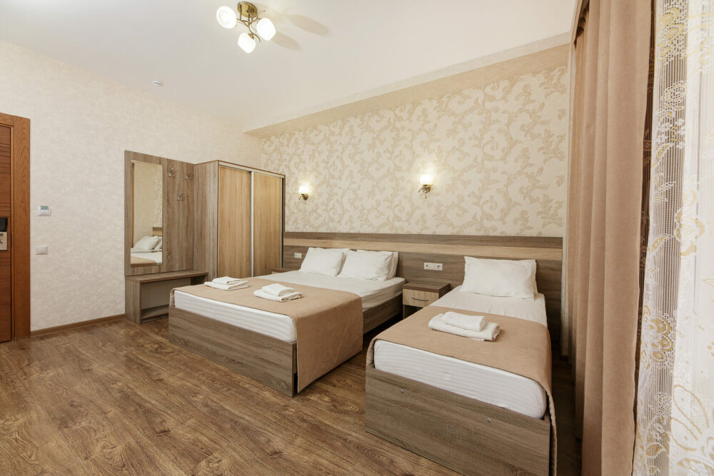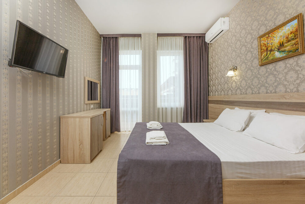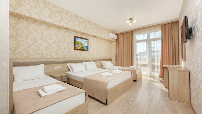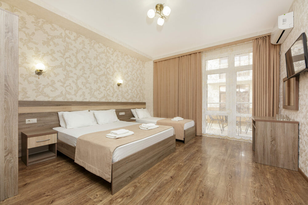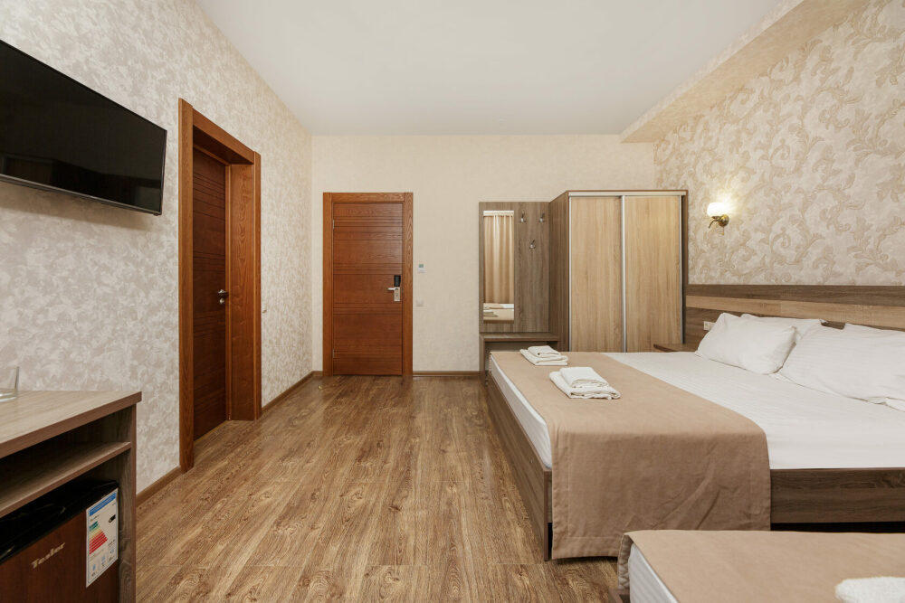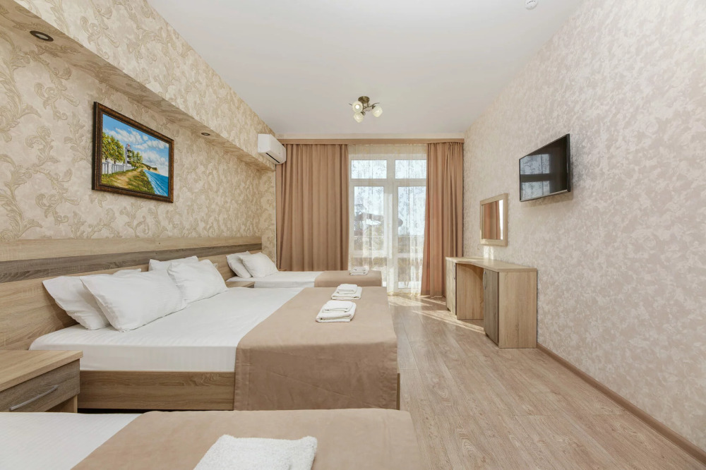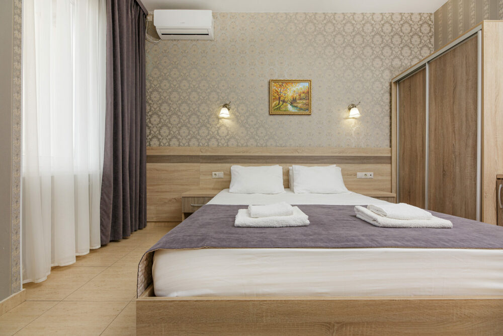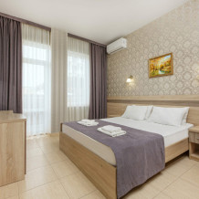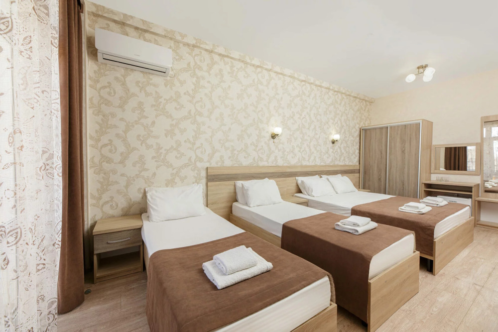 Кроме удобного расположения, мы предоставляем отдыхающим и комфортабельное проживание. В отеле есть все для этого необходимое. Бесплатный Wi-Fi и удобная индивидуальная парковка на территории отеля. Собственный бассейн с пресной водой, с подогревом. Так же в нем предусмотрено специальное отделение для детей. Рядом с бассейном открытая терраса для отдыха и загара. Есть детская площадка и анимация. Столовые, кафе и рестораны в шаговой доступности.