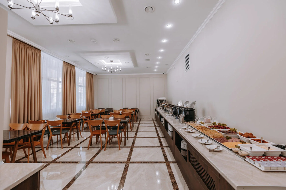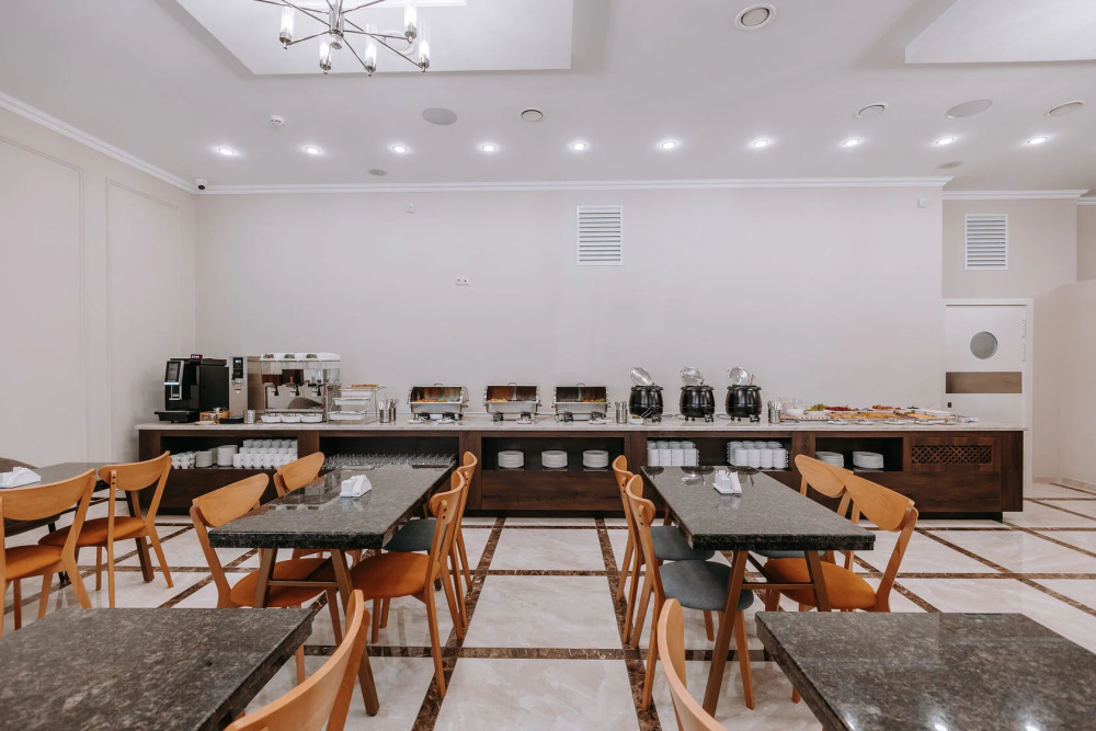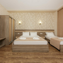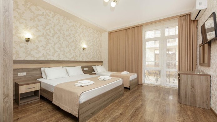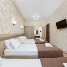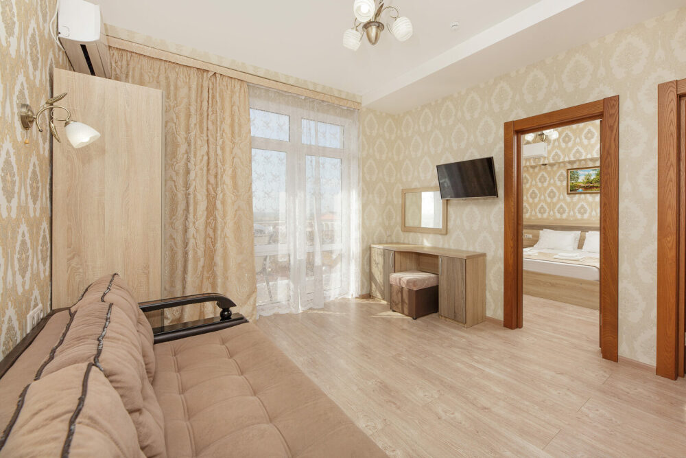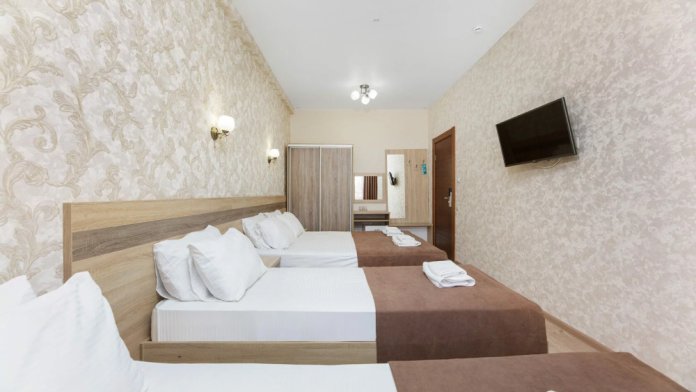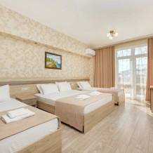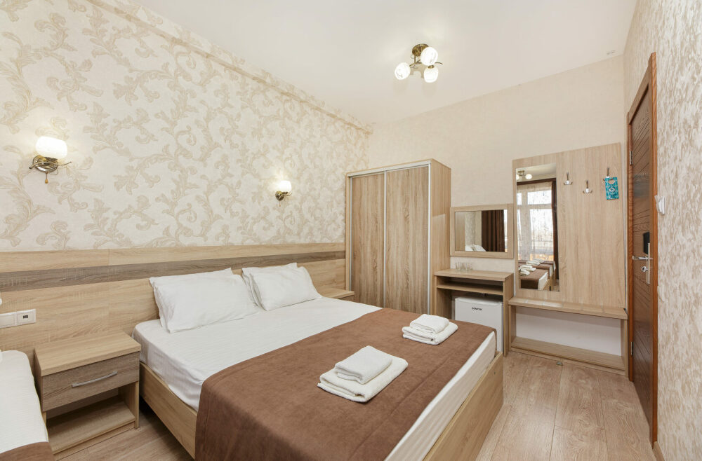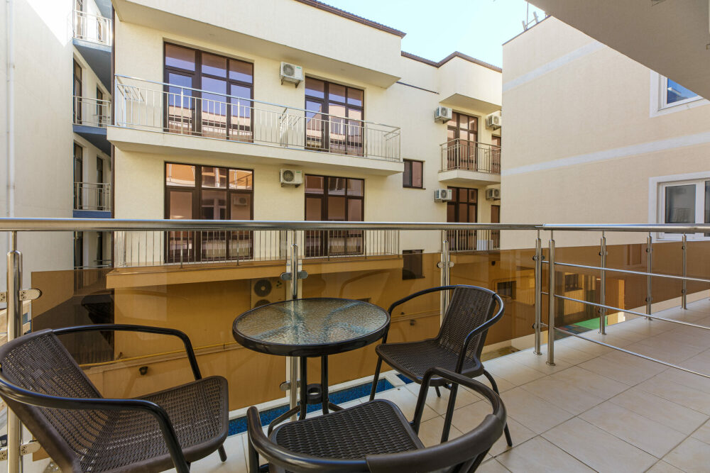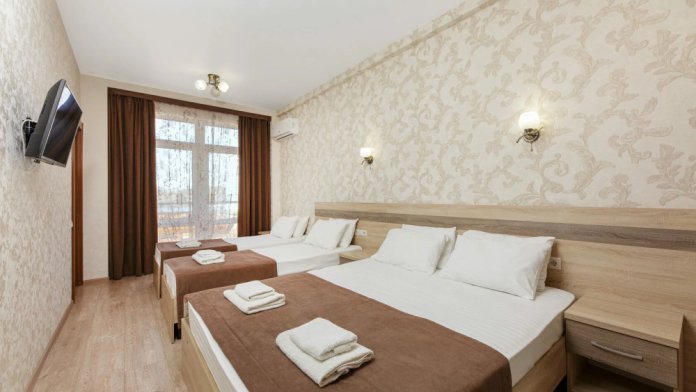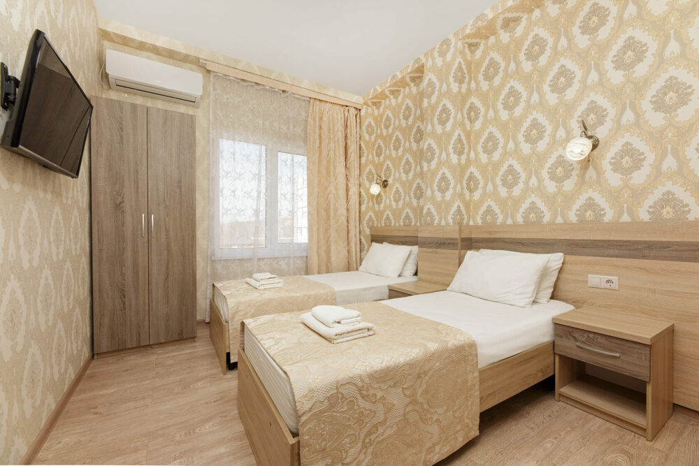 Кроме удобного расположения, мы предоставляем отдыхающим и комфортабельное проживание. В отеле есть все для этого необходимое. Бесплатный Wi-Fi и удобная индивидуальная парковка на территории отеля. Собственный бассейн с пресной водой, с подогревом. Так же в нем предусмотрено специальное отделение для детей. Рядом с бассейном открытая терраса для отдыха и загара. Есть детская площадка и анимация. Столовые, кафе и рестораны в шаговой доступности.