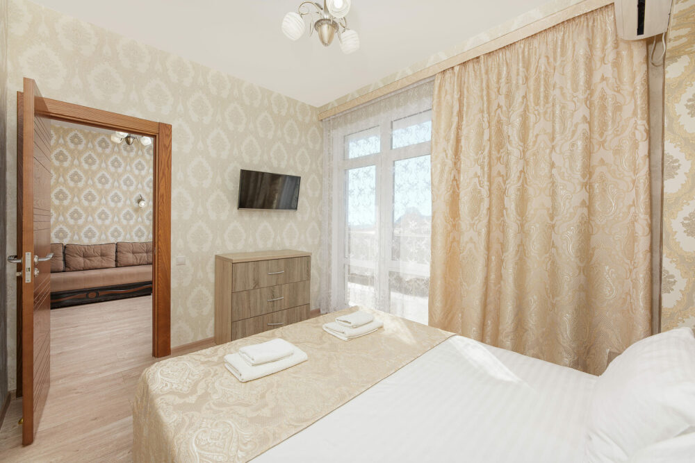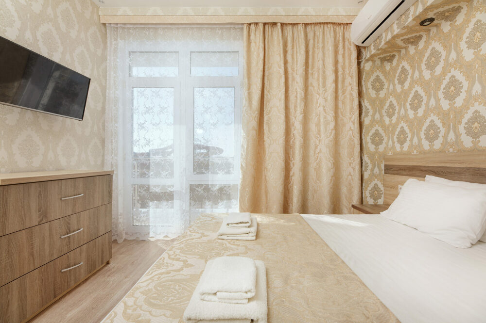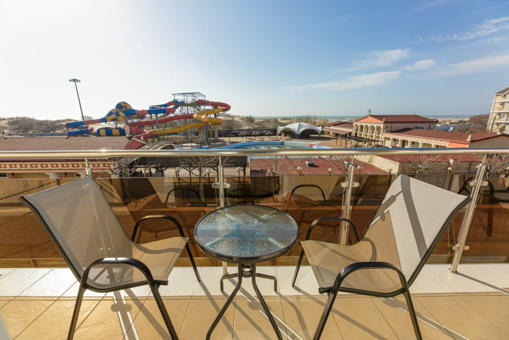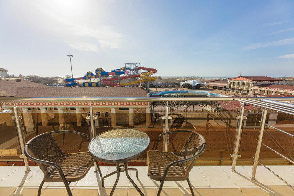 В отеле имеются разнообразные современные номера, с учетом любых пожеланий. Они специально обустроены для уютного и комфортного отдыха. Релаксирующий интерьер в теплых постельных тонах. Качественная мебель и текстиль. Кровати с ортопедическими матрасами. Расслабляющее и уютное постельное белье прекрасного качества. Удобная ванная комната со всем необходимым. Полная звукоизоляция, кондиционер и плазменный телевизор. Шикарный вид из окна на море, аквапарк или бассейн.