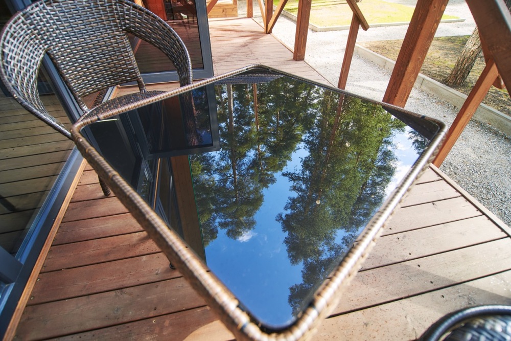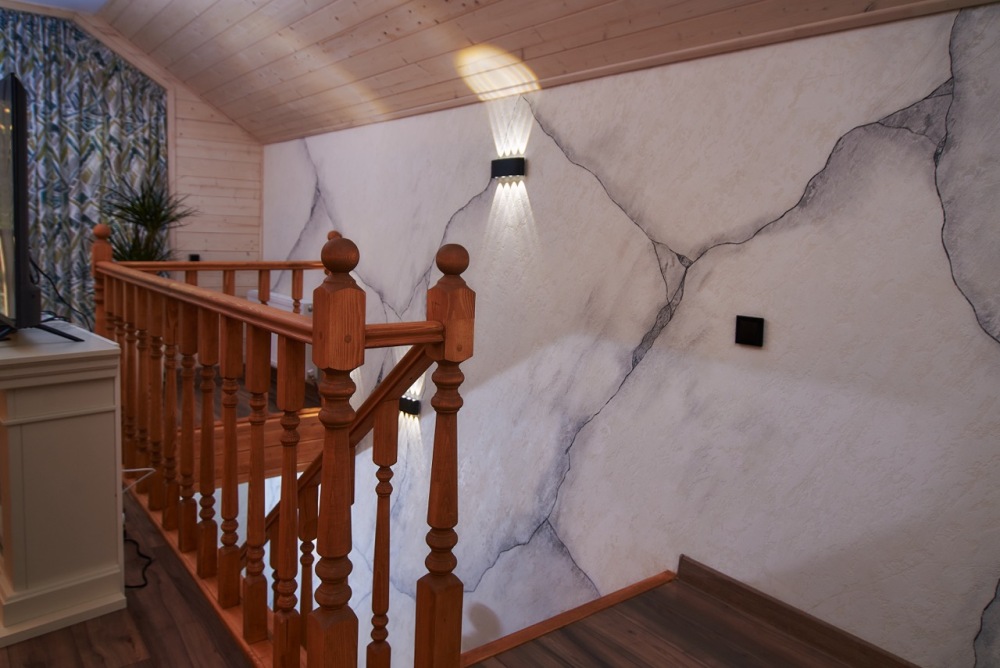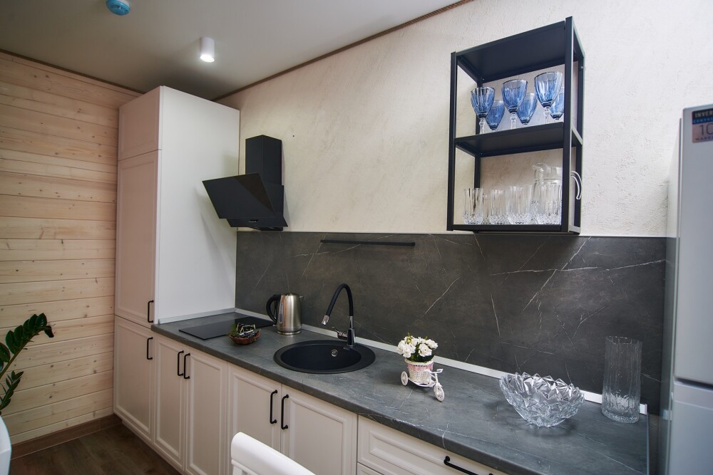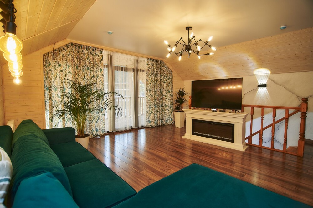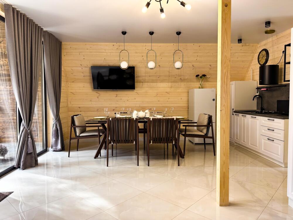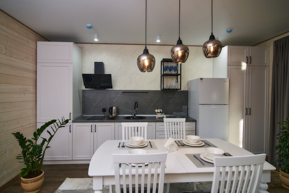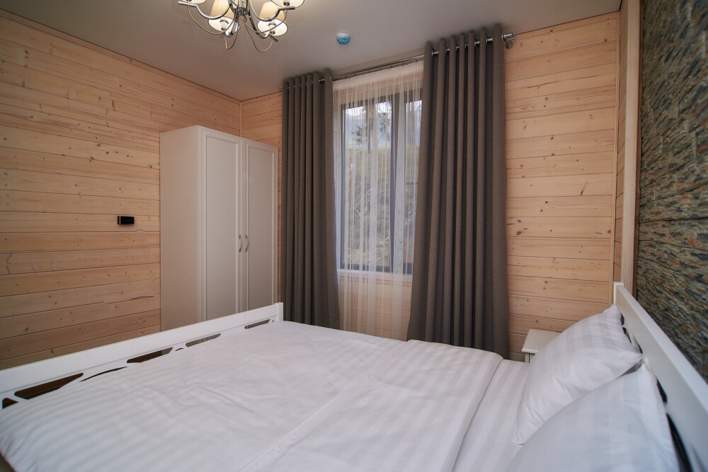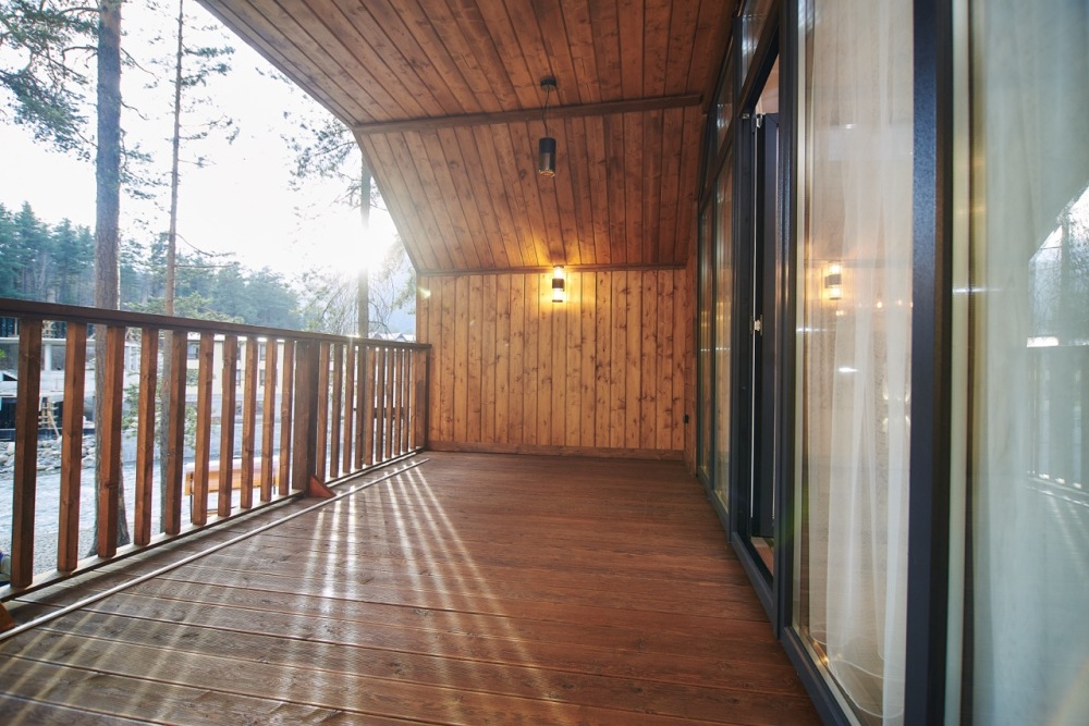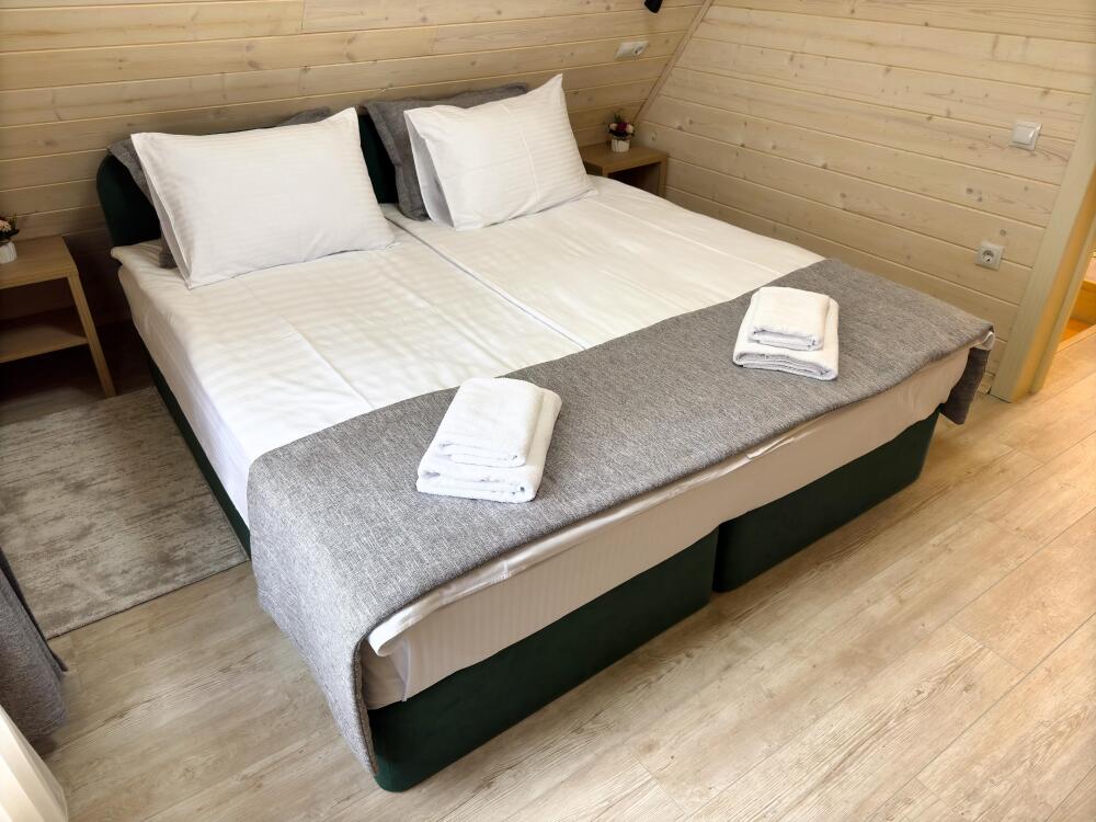 Наши домики типа «A-frame» и «Бaрнxаус» - настоящие шедевры из натурального дерева. Они полностью шумоизолированы и оснащены отоплением с теплым полом. Внутри Вы найдете все необходимое для комфортного отдыха: полностью оборудованную кухню с бытовой техникой и посудой для самостоятельного приготовления пищи.