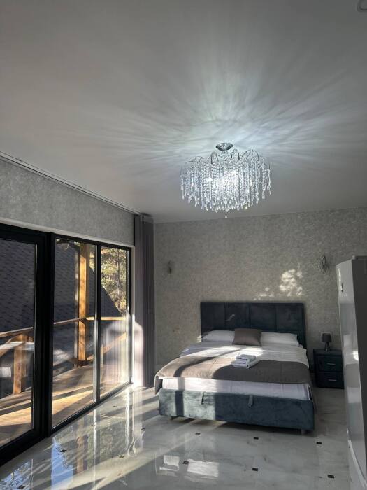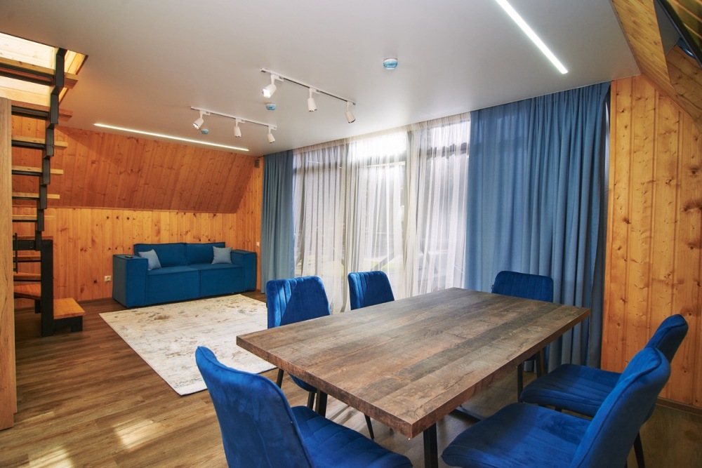 Треугольный дом с просторными комнатами, идеально подходящий для большой семьи или компании друзей. Весь дом оборудован теплыми полами, чтобы гости всегда чувствовали себя комфортно. Внутри вы найдете стильную и качественную дизайнерскую мебель.