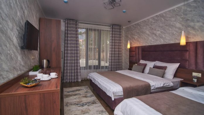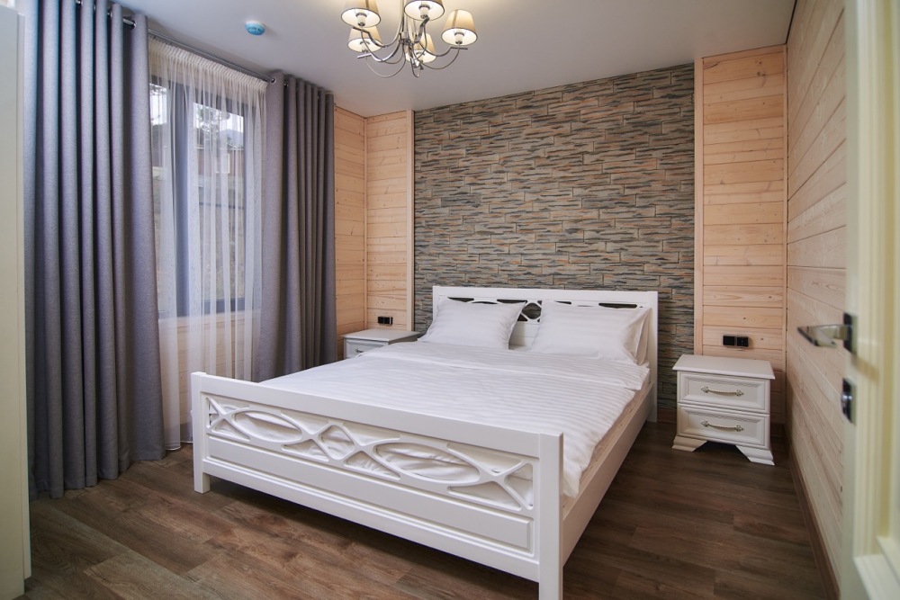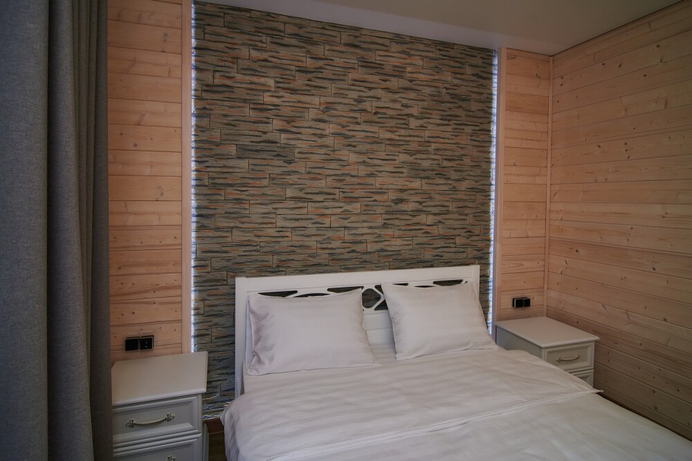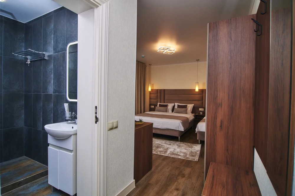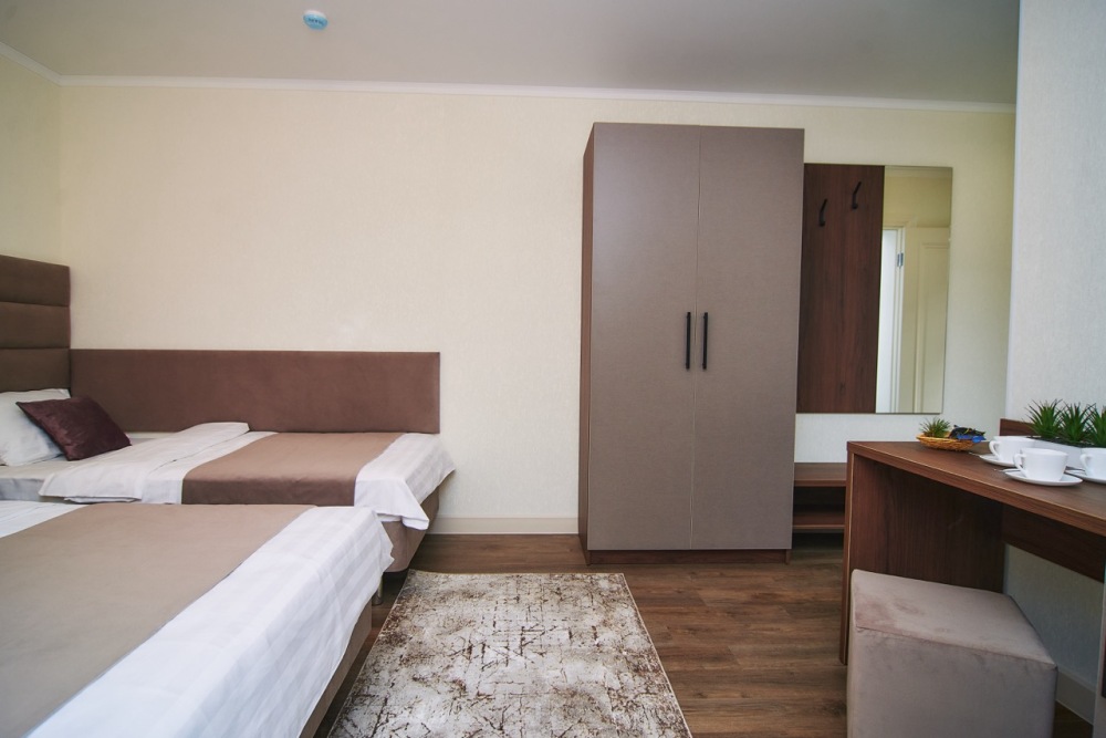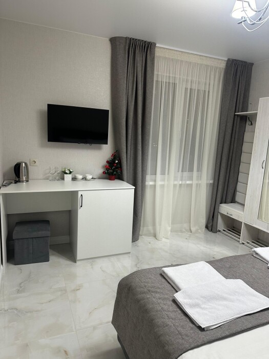 Для размещения гостей также есть номера категорий: Семейный, Полулюкс и Люкс. Все номера оснащены: теплым полом, чайником, мини-холодильником, телевизором. Номера категории Люкс оборудованы кухней.