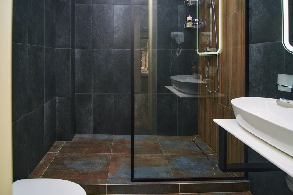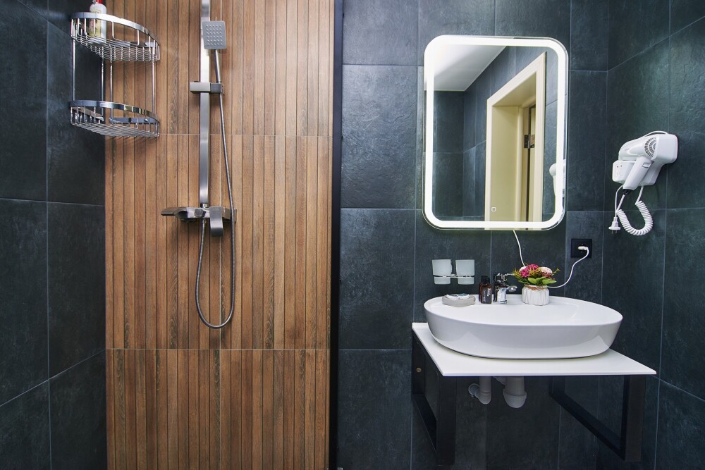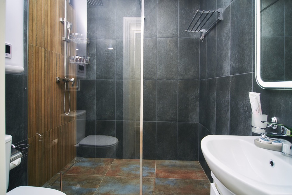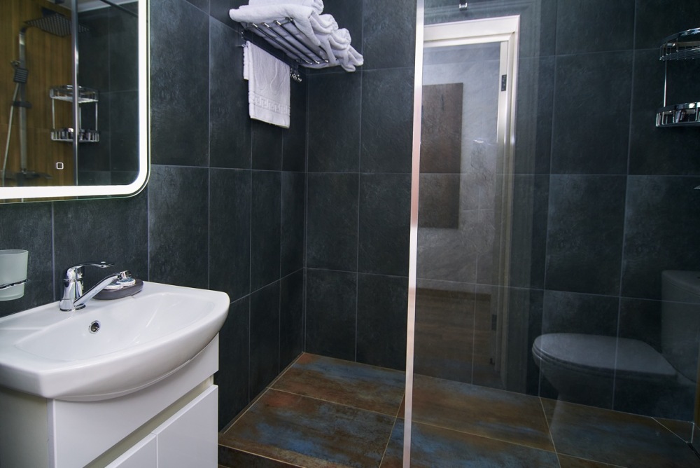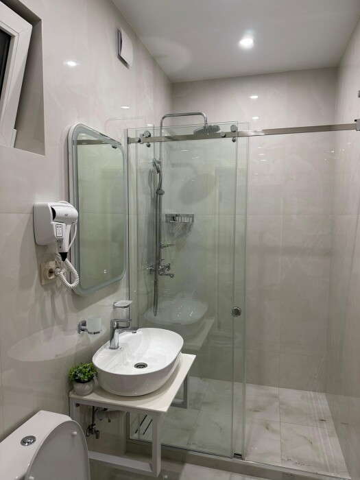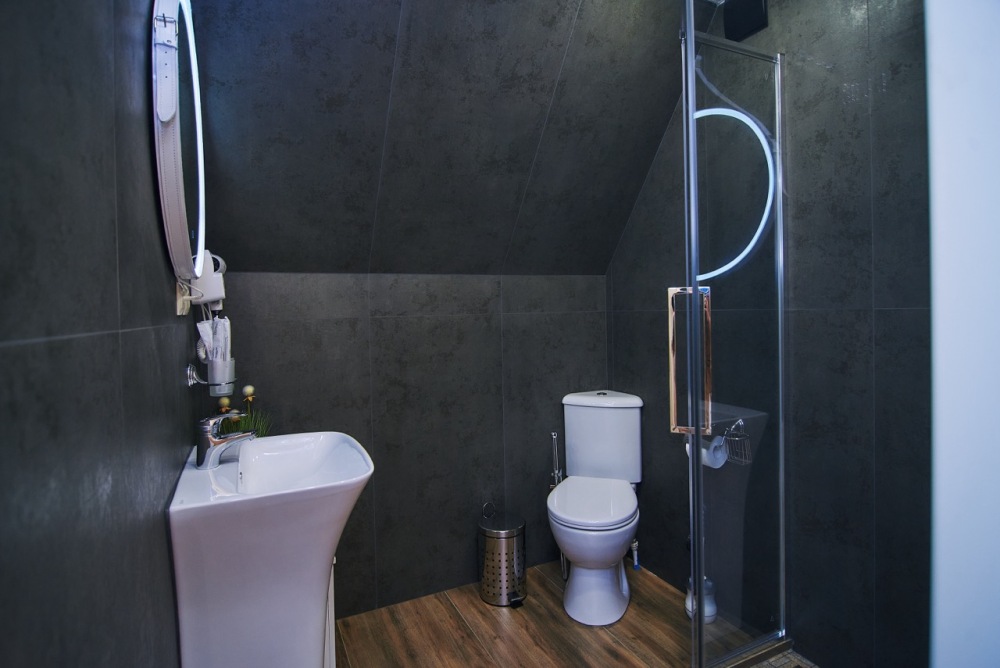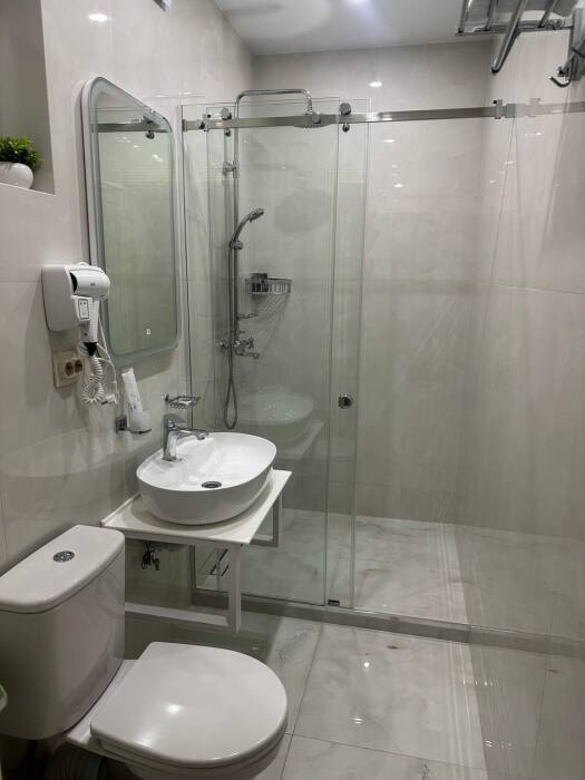 Индивидуальная ванная комната: душ, раковина, туалет, биде.