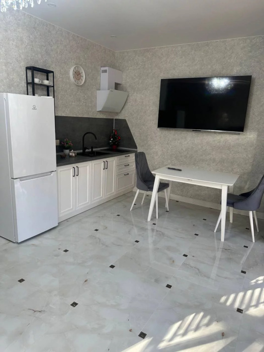 Дом оснащен: 3 спальни с удобными двуспальными кроватями, расположенными на 1 и 2 этажах; Диван для отдыха и расслабления; Просторный стол и комфортные стулья для приятных обедов и ужинов; Теплые полы во всех помещениях; Санузел с удобствами, включающий туалет, душ и раковину; Халаты, тапочки, полотенца, косметика для душа.