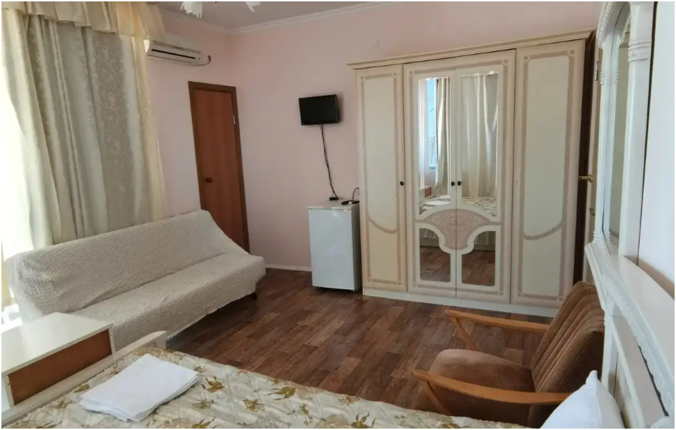 К услугам гостей предоставляются светлые уютные номера, есть вся необходимая мебель и техника.