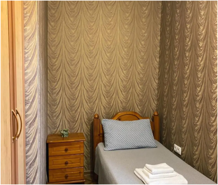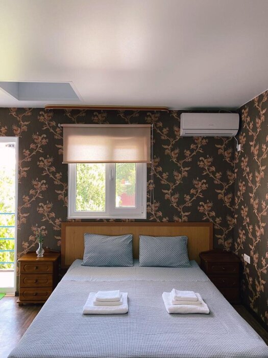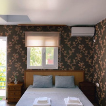 Номер с отдельным входом и всеми удобствами. Отлично подойдет для двоих или семьи с ребенком до 9 лет. Отдельный вход. Балкон. В номере 2 спальная кровать и детское доп. место (кресло-кровать), душ, туалет, телевизор, холодильник, шкаф, тумбы, кондиционер, Wi-Fi. Доп. место входит в стоимость.