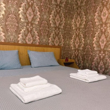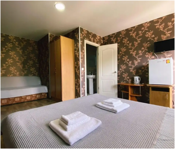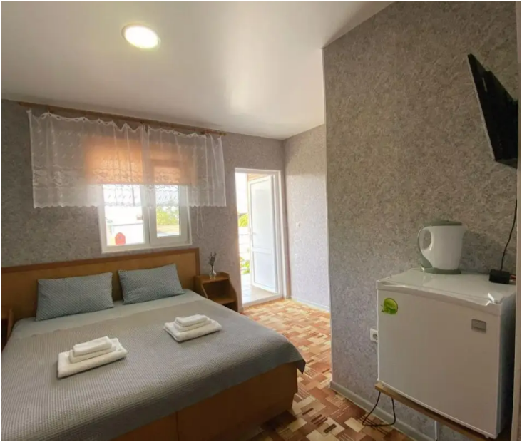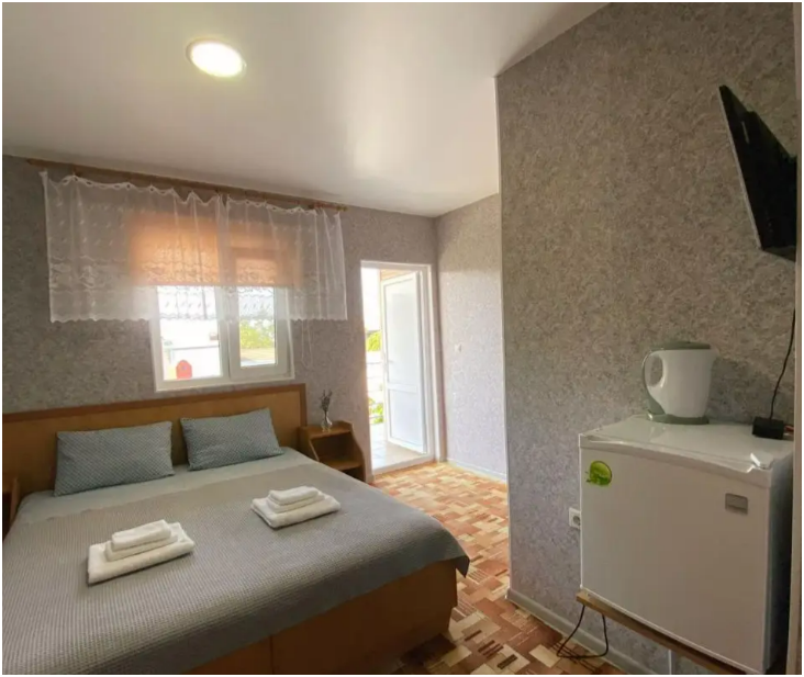В номерах: свой санузел-душевая кабина, сплит-система, небольшой холодильник, удобные кровати, качественное хлопковое постельное белье - это залог Вашего комфортного сна, белые полотенца на каждого гостя, телевизор, Wi-Fi. На пляж выдаем большие пляжные полотенца по запросу.