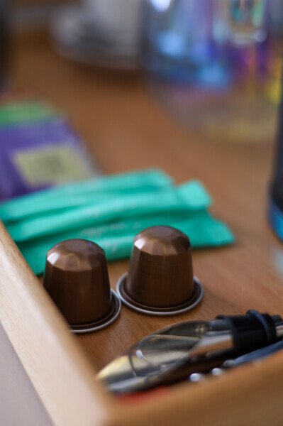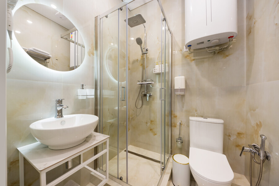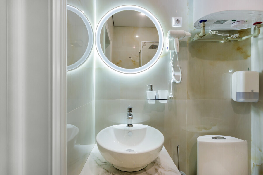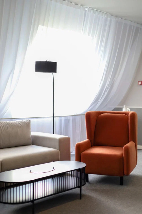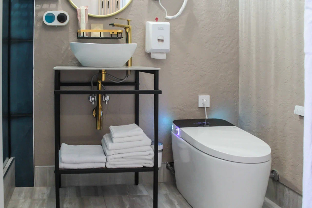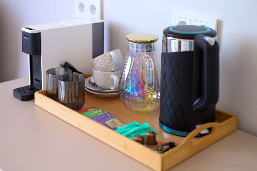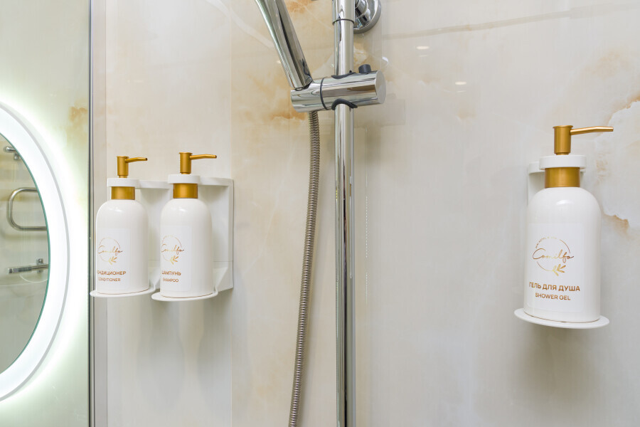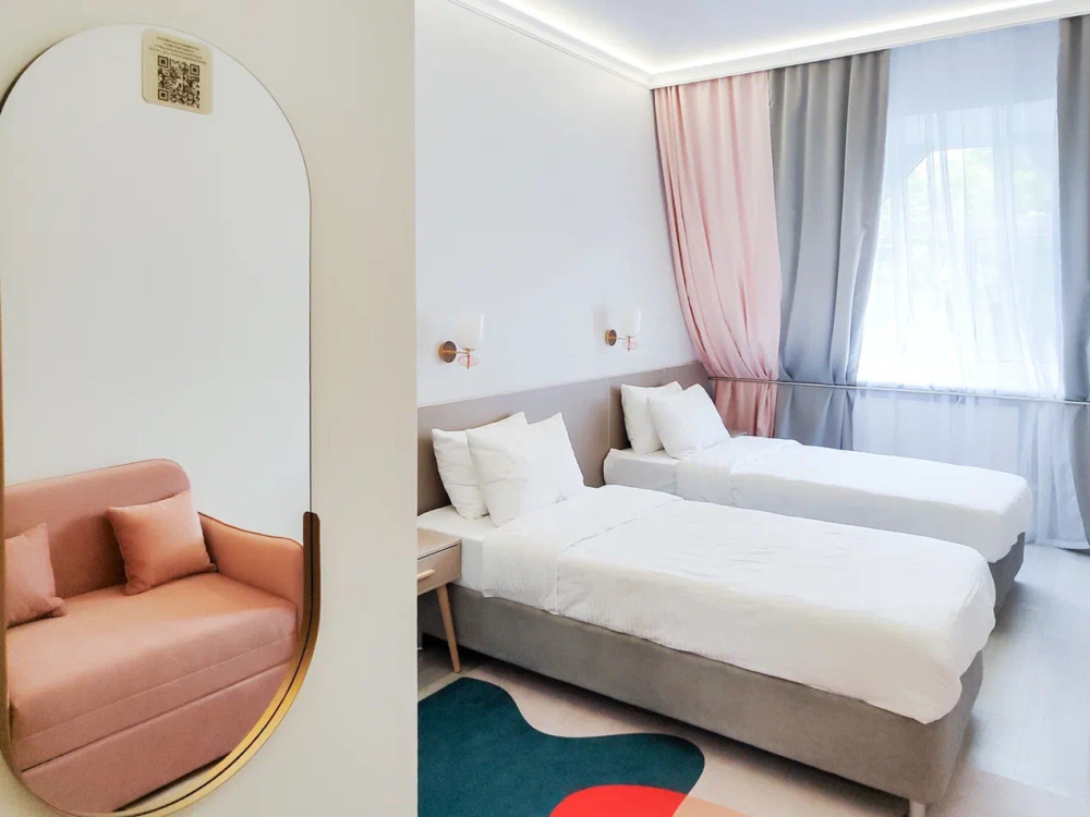 Красивый, уютный номер с максимально стильным и современным оснащением. В номере есть Яндекс колонка, капсульная кофе-машина, умный унитаз.