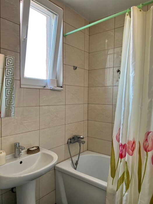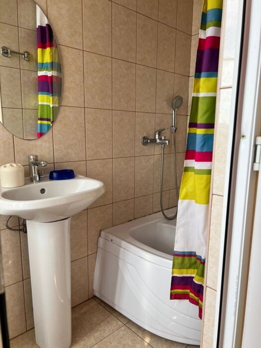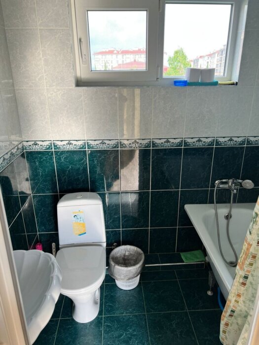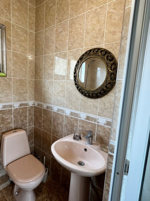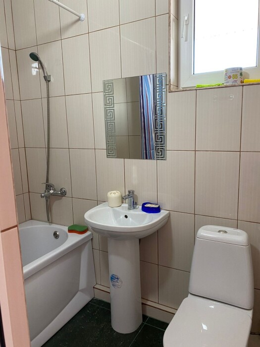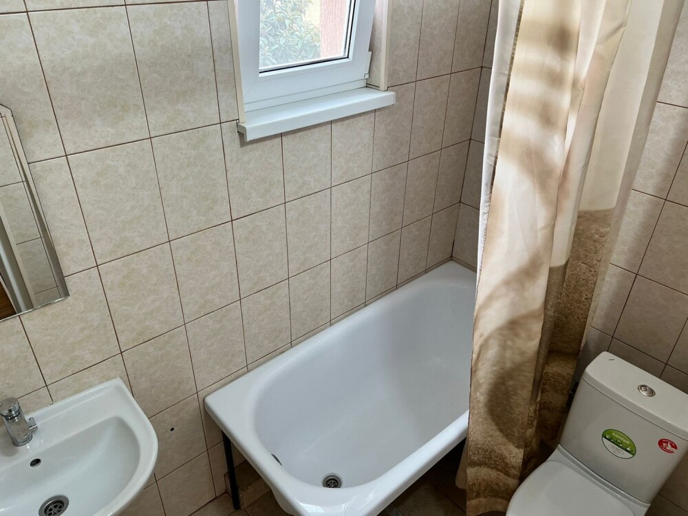 Индивидуальная ванная комната: ванна, раковина, туалет.