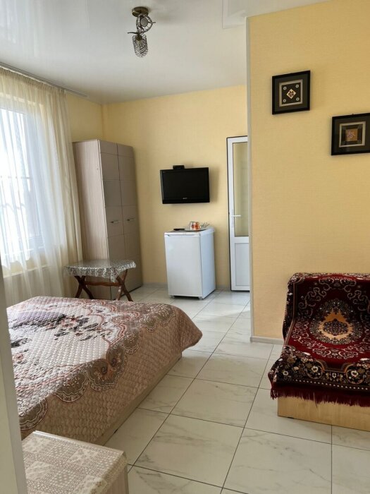 В номере: 1 двуспальная кровать, 1 диван односпальный.