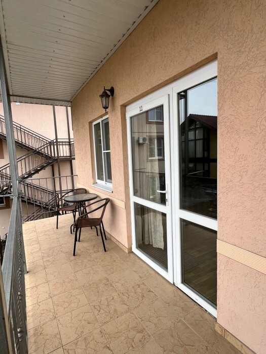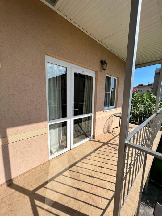 Трёхместный комфортный номер с балконом площадью 22 кв м с видом во двор. Подходит для размещения 4 человек (3 основных места и 1 дополнительное). Имеет спальню с приятным интерьером. В номере: 1 двуспальная кровать, 1 односпальная. Имеется телевизор, кондиционер, шкаф, вешалка, зеркало, журнальный столик, холодильник, стулья, антимоскитная сетка, чайник. Индивидуальная ванная комната: ванна, раковина, туалет.