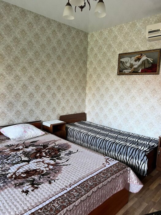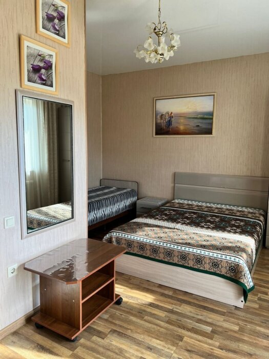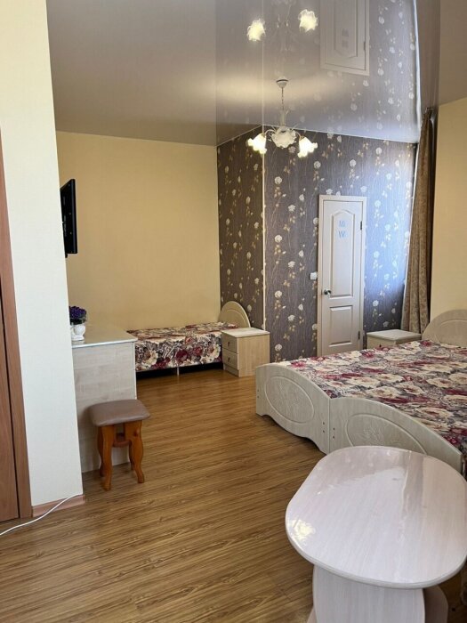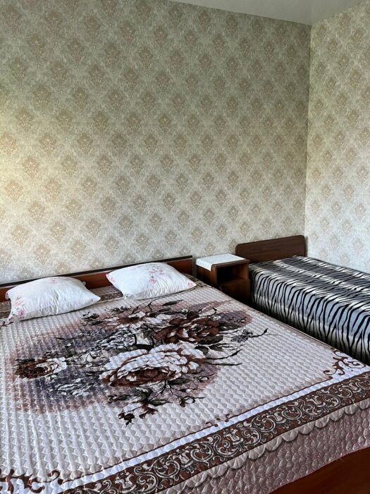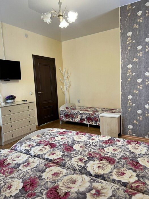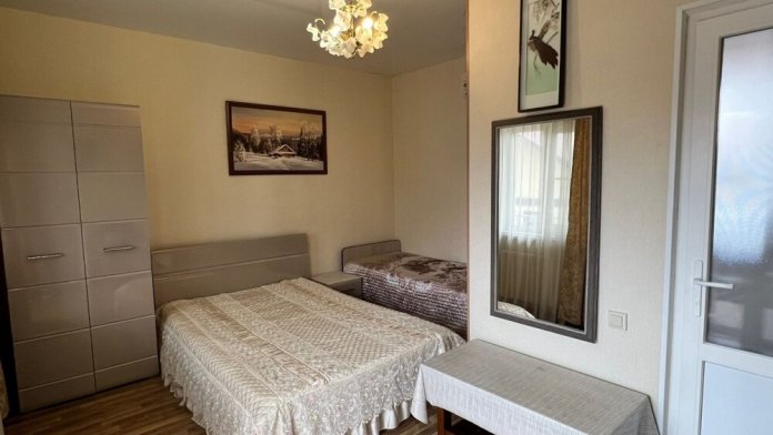 Трехместный стандартный номер площадью 22 кв м с видом во двор.Подходит для размещения 3 человек (3 основных места). Имеет спальню с приятным интерьером. В номере: 1 двуспальная кровать, 1 односпальная кровать.