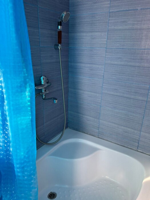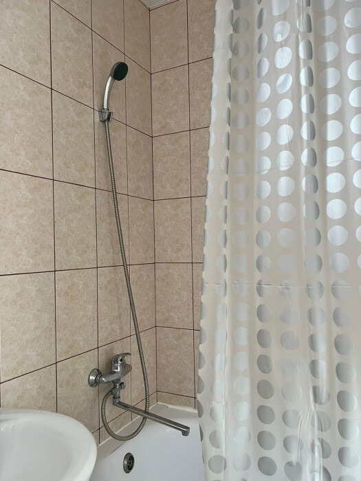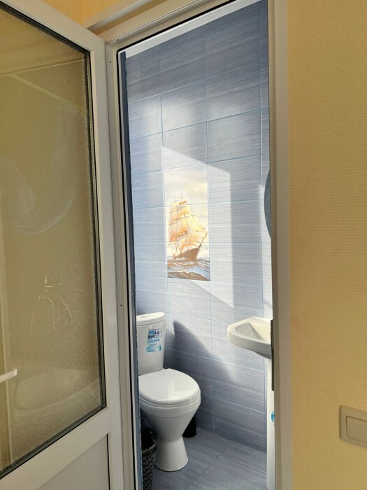 Индивидуальная ванная комната: душ, раковина, туалет.