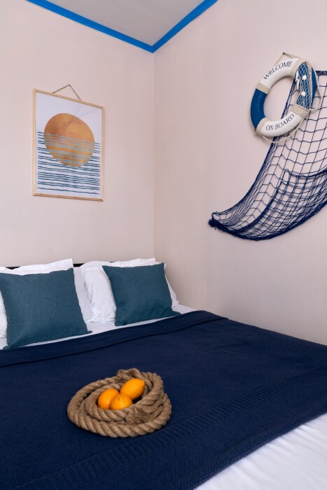 Четырёхместный номер площадью 19 кв.м подойдёт для семьи или компании друзей.Номера расположены на 1–2 этажах и выходят во внутренний двор, поэтому здесь спокойно и тихо.Размещение рассчитано на 4 гостей: в номере две односпальные кровати и диван-кровать, шкаф, комод и зеркало. Для комфорта есть Wi-Fi, телевизор и кондиционер.Также имеется балкон, где можно отдохнуть на свежем воздухе или высушить вещи. Собственная ванная комната оборудована душем, предоставляется постельное бельё. Гости могут пользоваться общей кухней с варочной поверхностью, микроволновкой, холодильником, чайником и посудой.