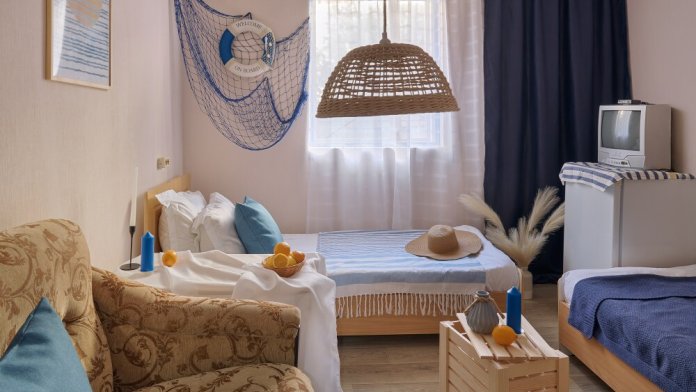 В номерах предусмотрено всё необходимое для комфортного проживания: удобные кровати, шкаф для одежды, комод и зеркало. Оснащение включает Wi-Fi, телевизор и кондиционер, а также балкон с возможностью сушки одежды. В каждом номере есть собственная ванная комната с душем. Гостям предоставляется постельное бельё.