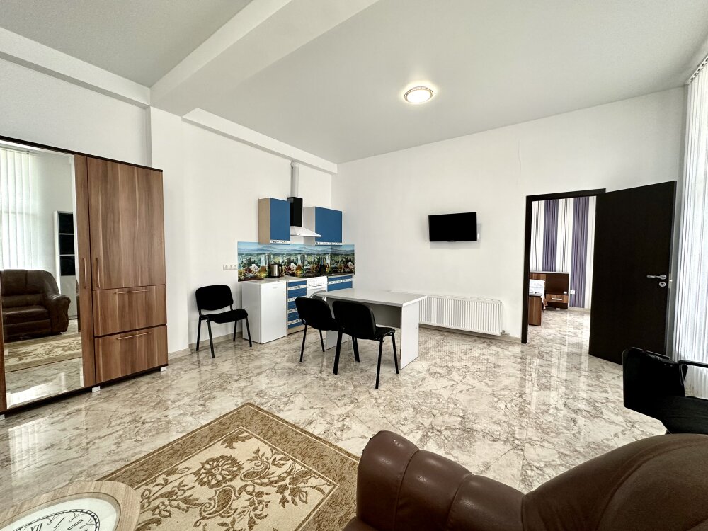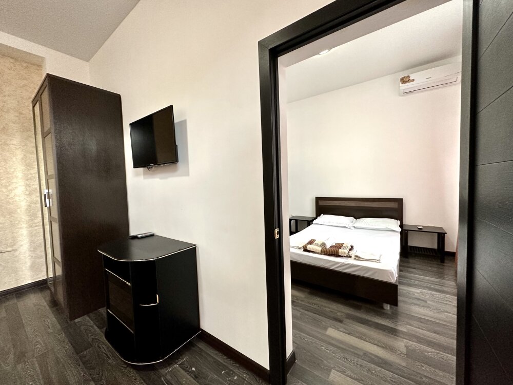 Прекрасно подходит для большой семьи с маленькими детьми на долгий период. Состоит из 2 комнат: спальня и просторня гостиная. В номере кондиционер, телевизор, холодильник, балкон, кухонный уголок и все необходимое для вашего комфортного пребывания!