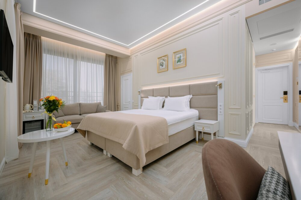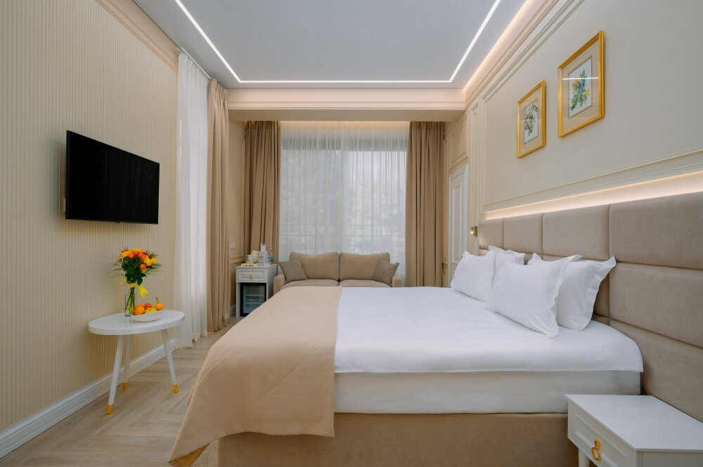 Сочетающий бескомпромиссный комфорт и нотки роскоши однокомнатный номер с двуспальной кроватью и возможностью установки дополнительной раскладной кровати.