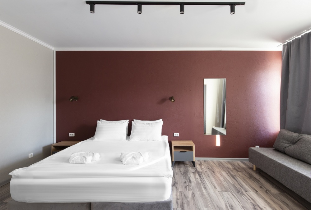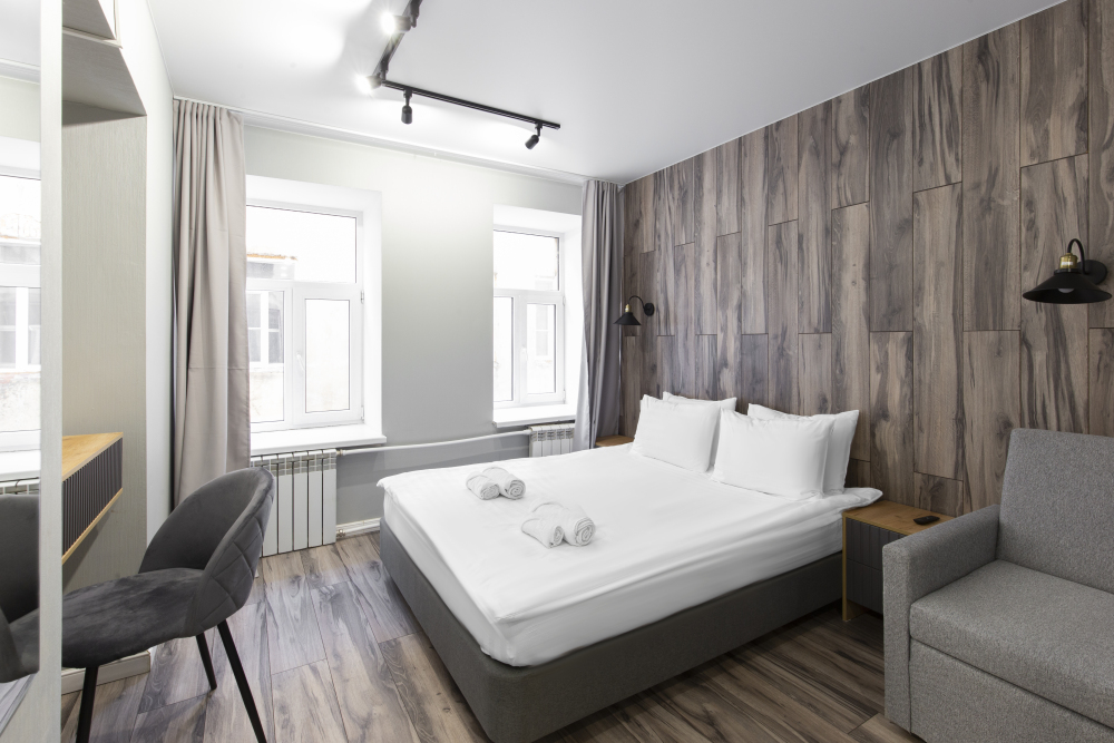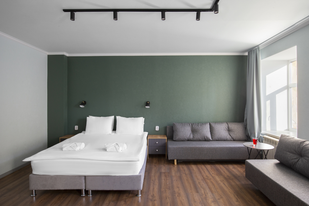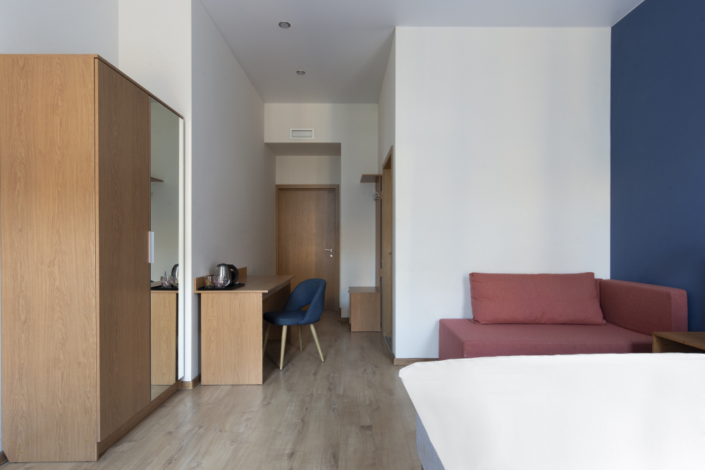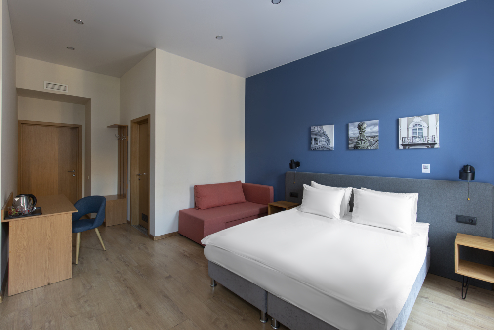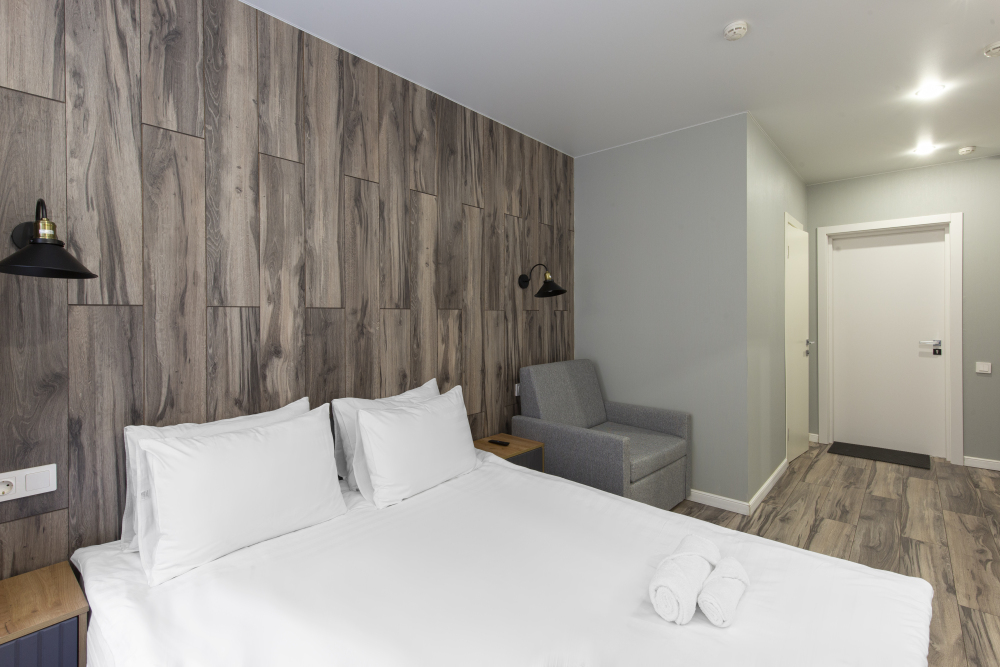 В отеле имеется 54 номера различной комфортности, что позволяет подобрать размещение для любого формата и бюджета гостей. Номера оборудованы кроватями с ортопедическими матрасами, косметическими принадлежностями, платяным шкафом, письменным столом, телевизором с плоским экраном. В отеле работает бесплатный Wi-Fi, круглосуточная стойка регистрации, доступны услуги прачечной, кулеры с питьевой водой на всех этажах.