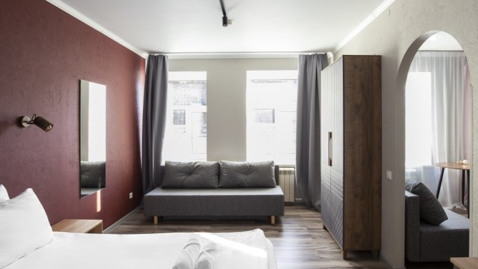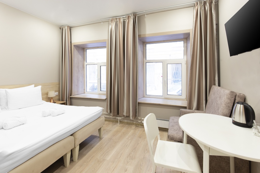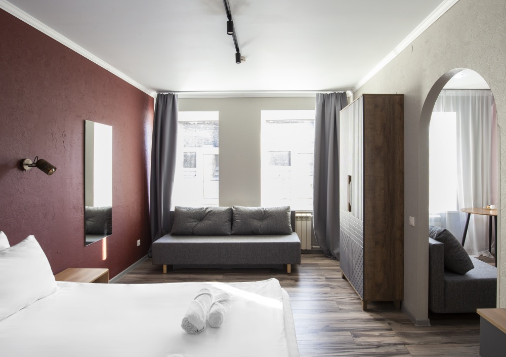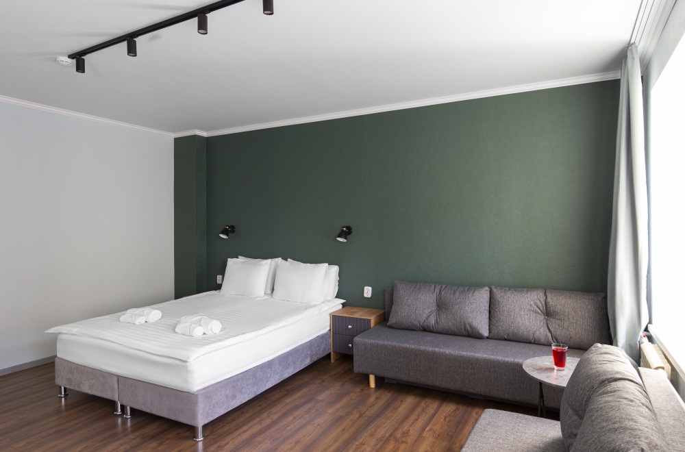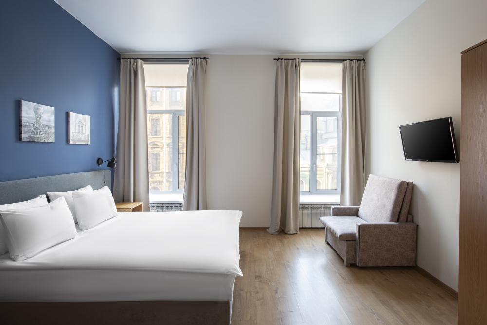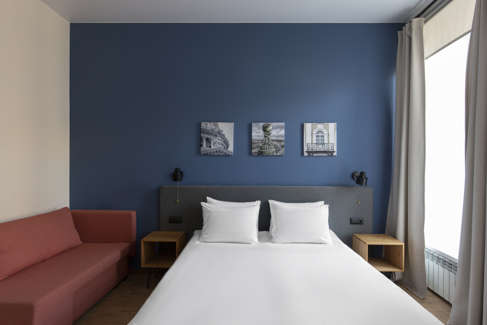 В отеле имеется 54 номера различной комфортности, что позволяет подобрать размещение для любого формата и бюджета гостей. Номера оборудованы кроватями с ортопедическими матрасами, косметическими принадлежностями, платяным шкафом, письменным столом, телевизором с плоским экраном. В отеле работает бесплатный Wi-Fi, круглосуточная стойка регистрации, доступны услуги прачечной, кулеры с питьевой водой на всех этажах.