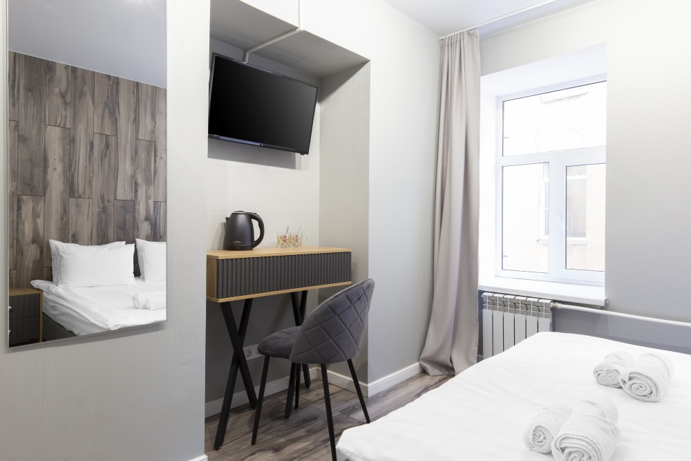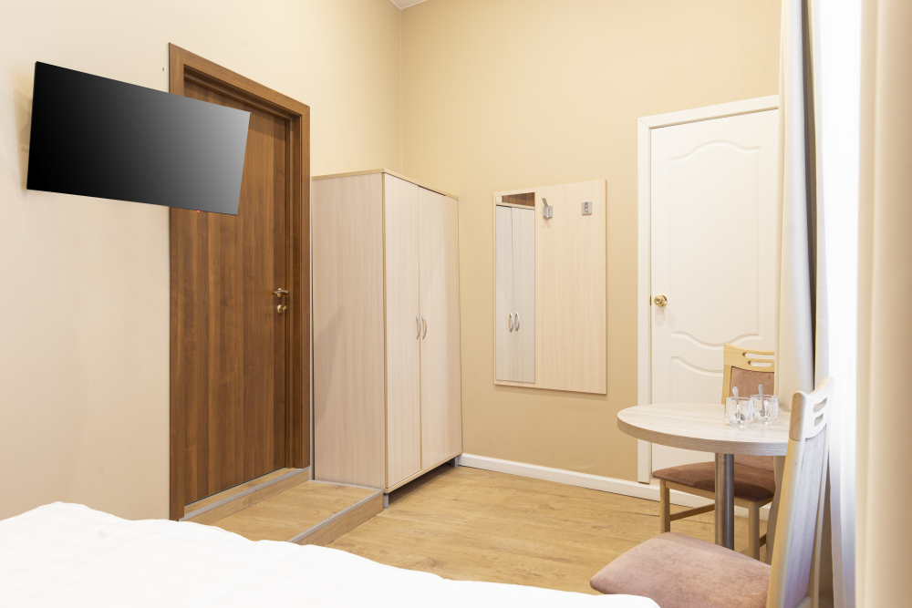 Номер оснащен всем необходимым для комфортного проживания: рабочая зона, wi-fi, плазменный ТВ, место для хранения вещей, чайник.