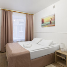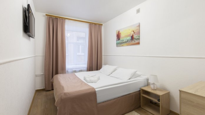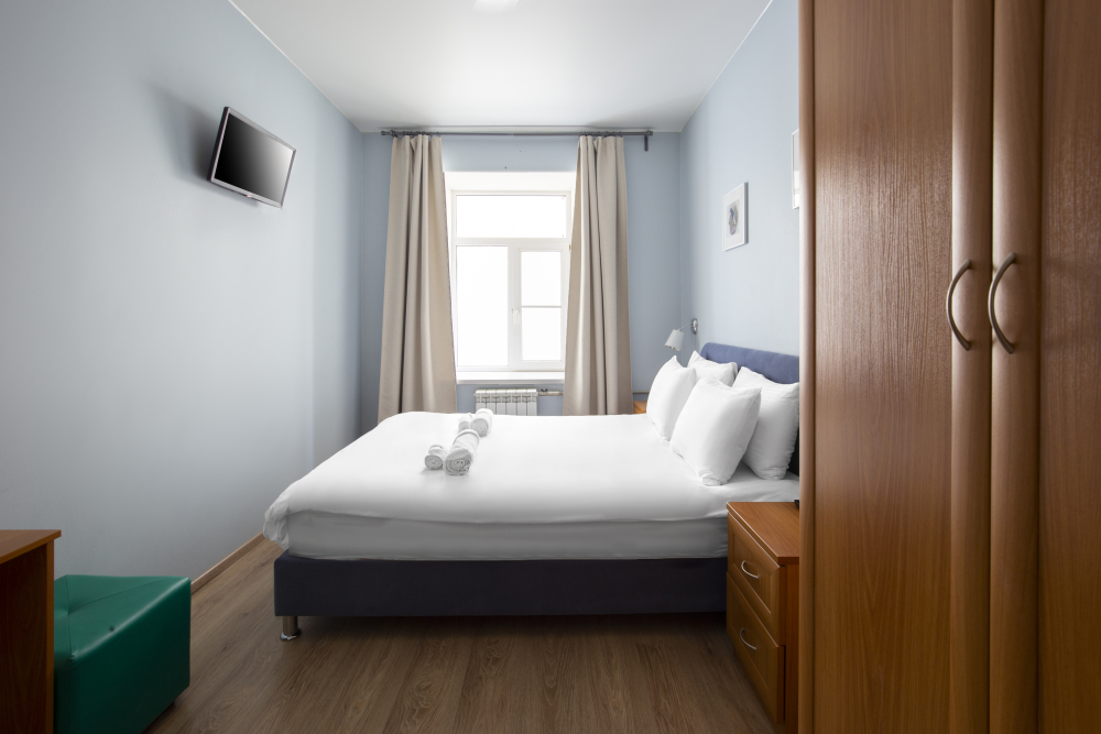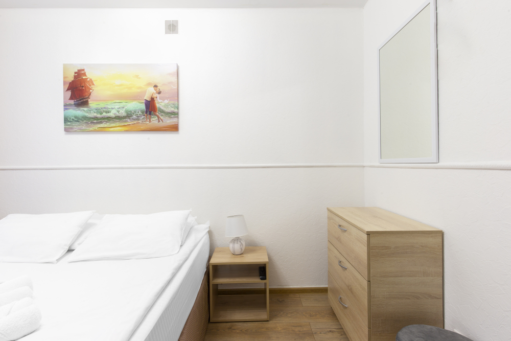 Просторный двухместный номер с двуспальной кроватью 160*200 или две односпальные кровати 80*200 с ортопедическим матрасом. Выполнен в светлых тонах, может быть использован для проживания семьи с ребенком. Есть возможность установить дополнительную кровать.