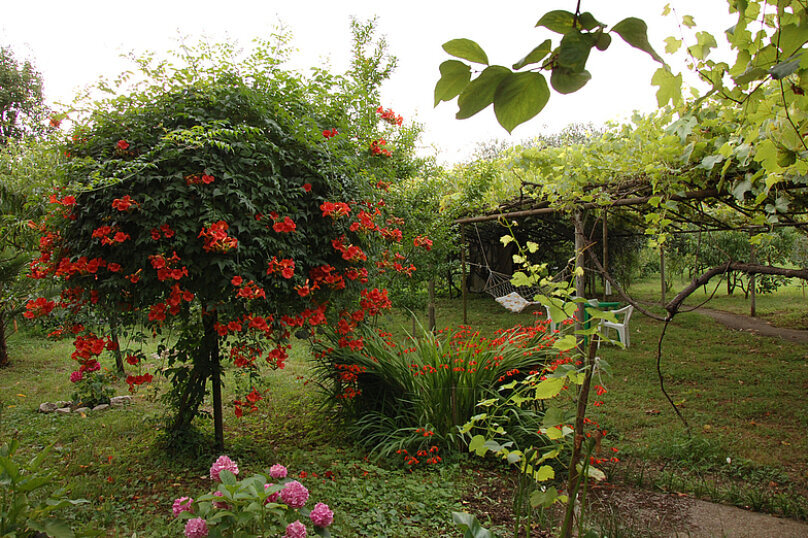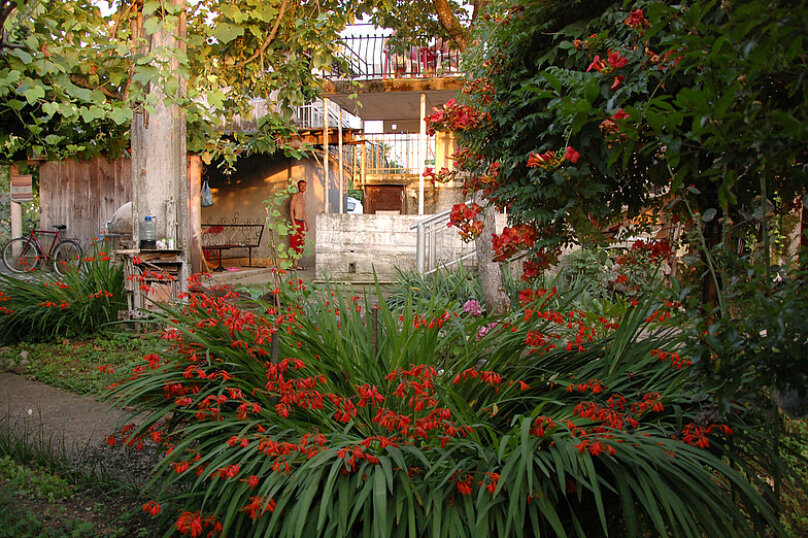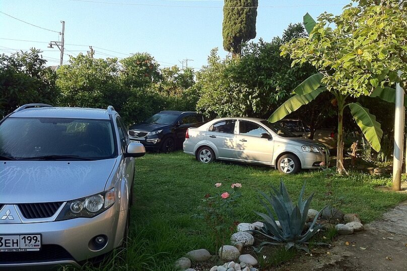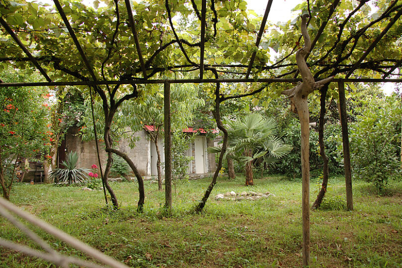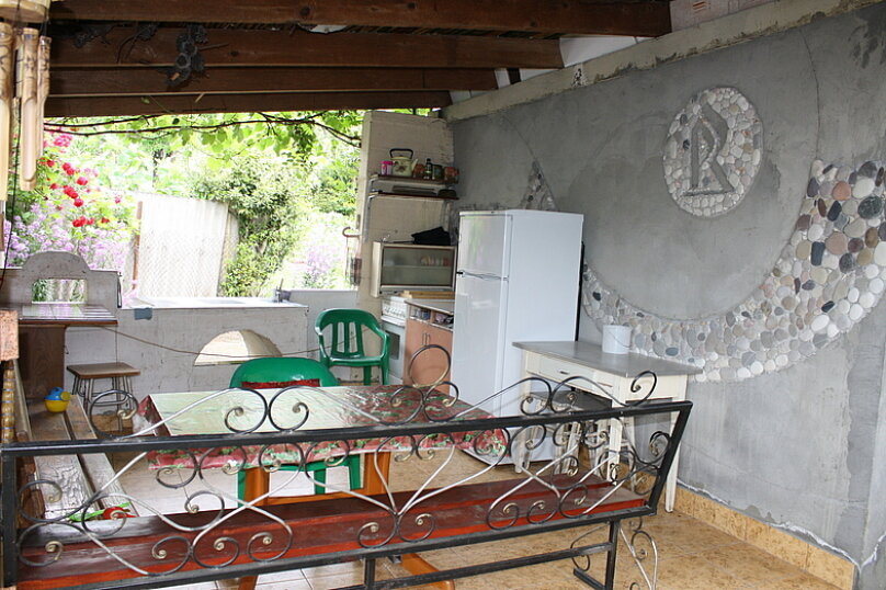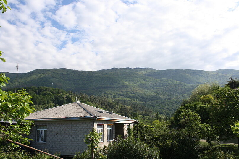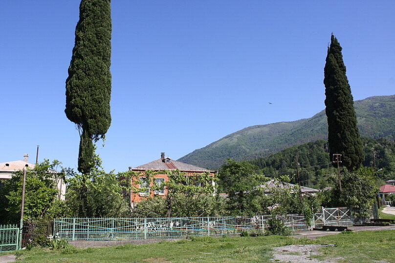 Сдается комната на втором этаже двухэтажного кирпичного дома. Есть две кухни: с холодильником с выходом на балкон на втором этаже, большая летняя кухня на первом. Все удобства, холодная, горячая вода круглосуточно, кондиционеры, спутниковое телевидение, Wi-Fi. Колодезная питьевая вода, мангал, два велосипеда. Парковка на территории участка. Огромный виноградник-шалаш, гамаки (вино, чача). Своя пасека. Рядом открылось новое кафе.