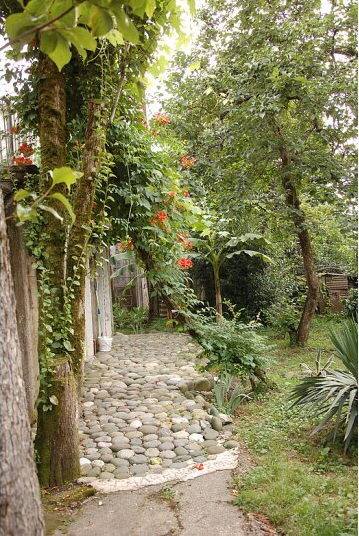 Предлагаем отдых для любителей тишины и покоя. Дом расположен в ущелье г. Мамзышхи в с. Псахара (Колхида) на краю г. Гагра. Большой плодовый сад (40 соток) граничит с горной рекой Ольгинка, на берегу которой, в тени вековых деревьев, можно прекрасно проводить время. С участка открывается удивительная панорама на горы и эвкалиптовую рощу.