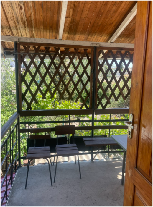 На территории коттеджа есть кухня, мангал, стиральная машина, во дворе есть столики, скамейки, шезлонг.