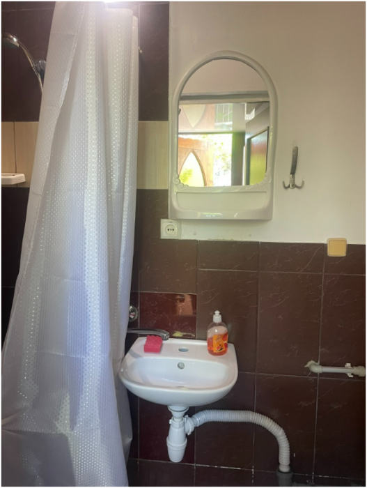 До моря 800 метров, до центра города 10 минут, ближайший магазин через дорогу. Дорога асфальтированная, освещается, без горок и закоулков. Есть где ставить машину.