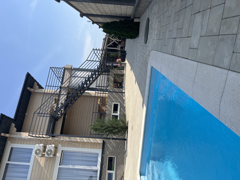 Возле дома приватная зона на охраняемой придомовой территории комплекса, бассейн общий для всех гостей .